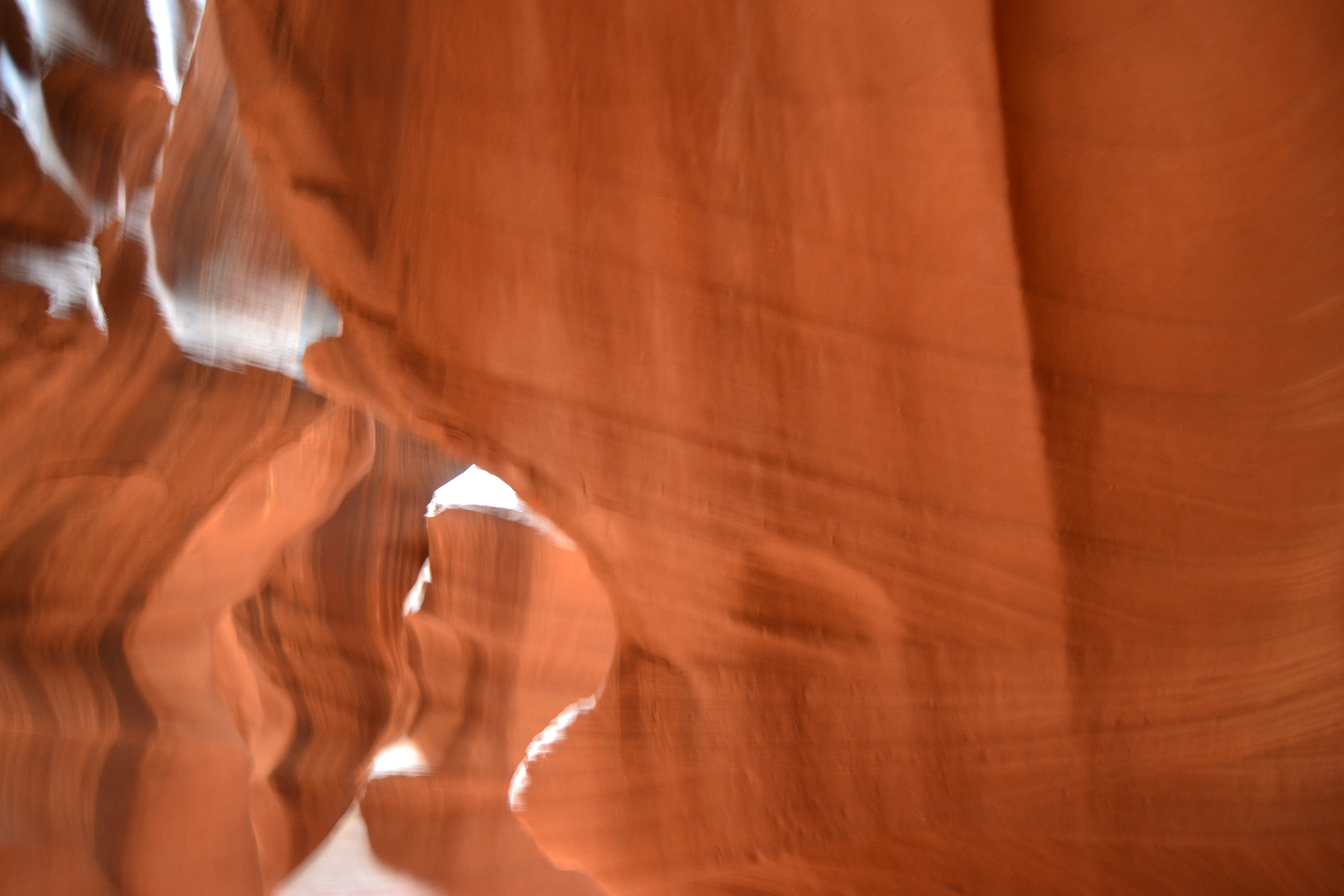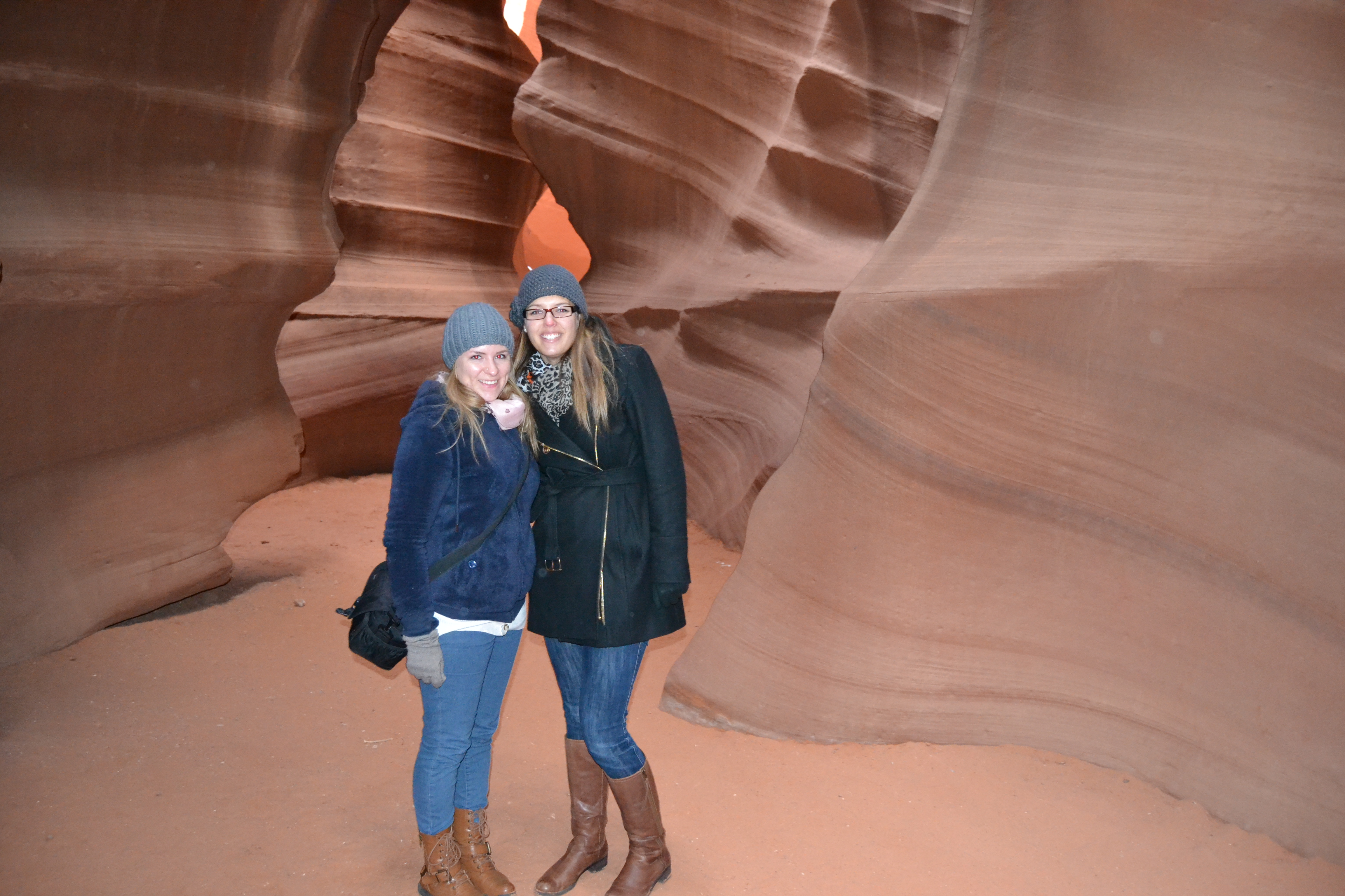 Die Tour startete mitten im Nirgendwo mit einem Allrad-Jeep der auch unbedingt nötig war. Dieser war der einzige geschlossene unter der vielen Cabrio-Jeeps (zum Glück 😜) Wir bekamen eine Privattour zum Upper-Antelope-Canyon nur mit einer netten mexikanischen Familie zusammen. Für das Gebiet der Indianer muss man sogar extra Steuern zahlen. Der Guide war ein waschechter Navajo-Indianer der uns über sehr sehr holprige Matschpisten zum Antelope-Canyon brachte. Es war eisig kalt und hatte Minus-Grade. Von außen kann man bis auf einen Spalt in einem Fels nichts spektakuläres erkennen aber im Fels drin sieht man sehr beeindruckende schön geformte Felswände in verschiedenen, leuchtenden Brauntönen die bei Lichteinfall von oben genial aussehen. Unser Indianer-Guide zeigte uns Elvis Presley, einen Schmetterling, einen Adler und einen Bär die man in den Felsen erkennen konnte. Außerdem nahm er auch mal unsere Kamera in die Hand und fotografierte tolle Motive. Er gab uns auch viele Tipps von welchen Stellen aus man die besten Bilder bekommt und erzählte uns, dass eine Frau ein Foto aus den Canyons für 1 Million $ verkaufen konnte. Da strengten wir uns umso mehr an.