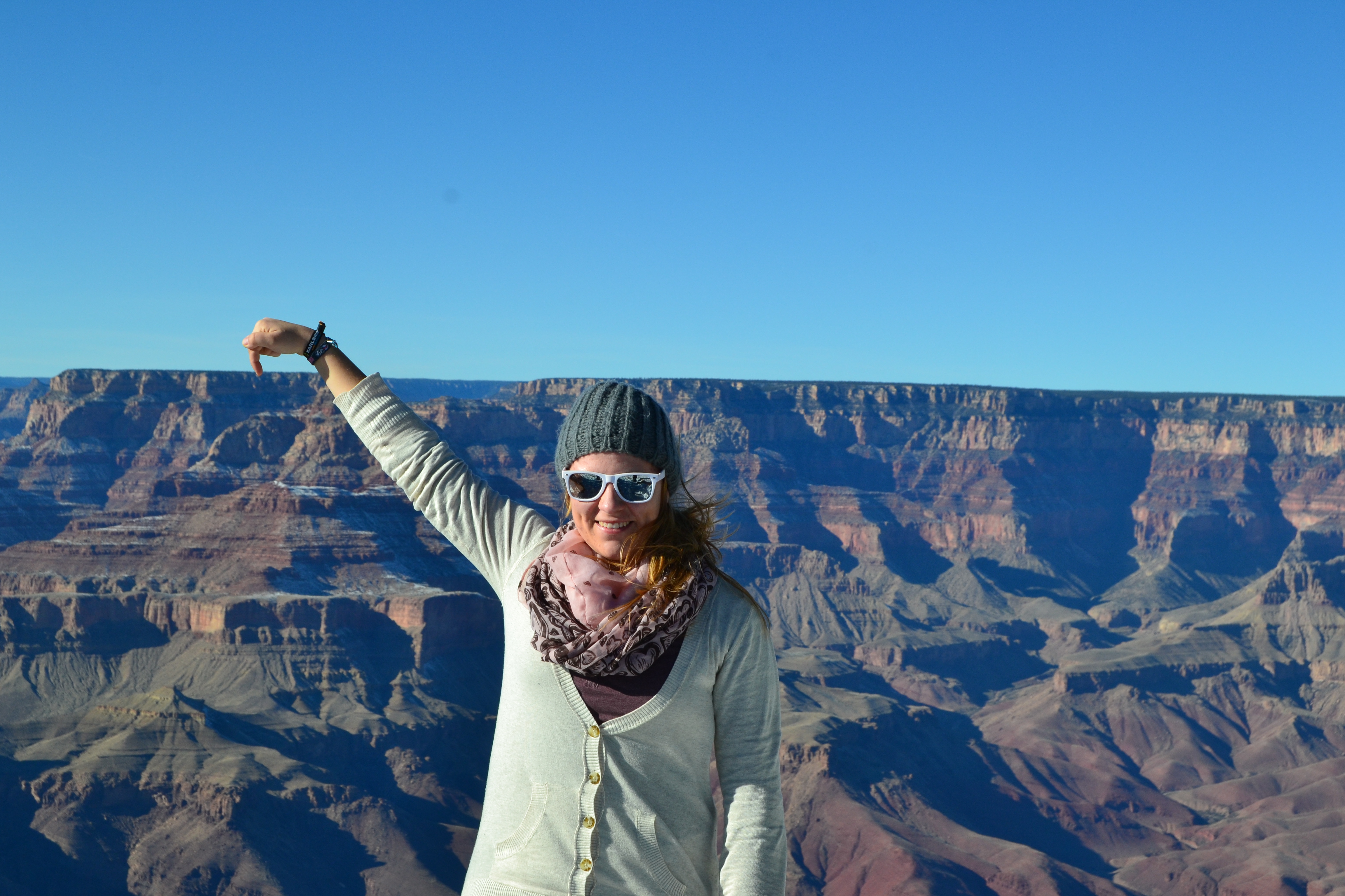 Dann ging’s auf zum Grand Canyon wo die Straße die wir fahren wollten gesperrt war und das Navi uns in die Irre führen wollte. Zum Glück haben wir genug Landkarten dabei und konnten das Navi die 3 stündige Fahrt ignorieren. Unterwegs haben wir an einem total schönen Aussichtspunkt halt gemacht wo es auch weit runter geht.