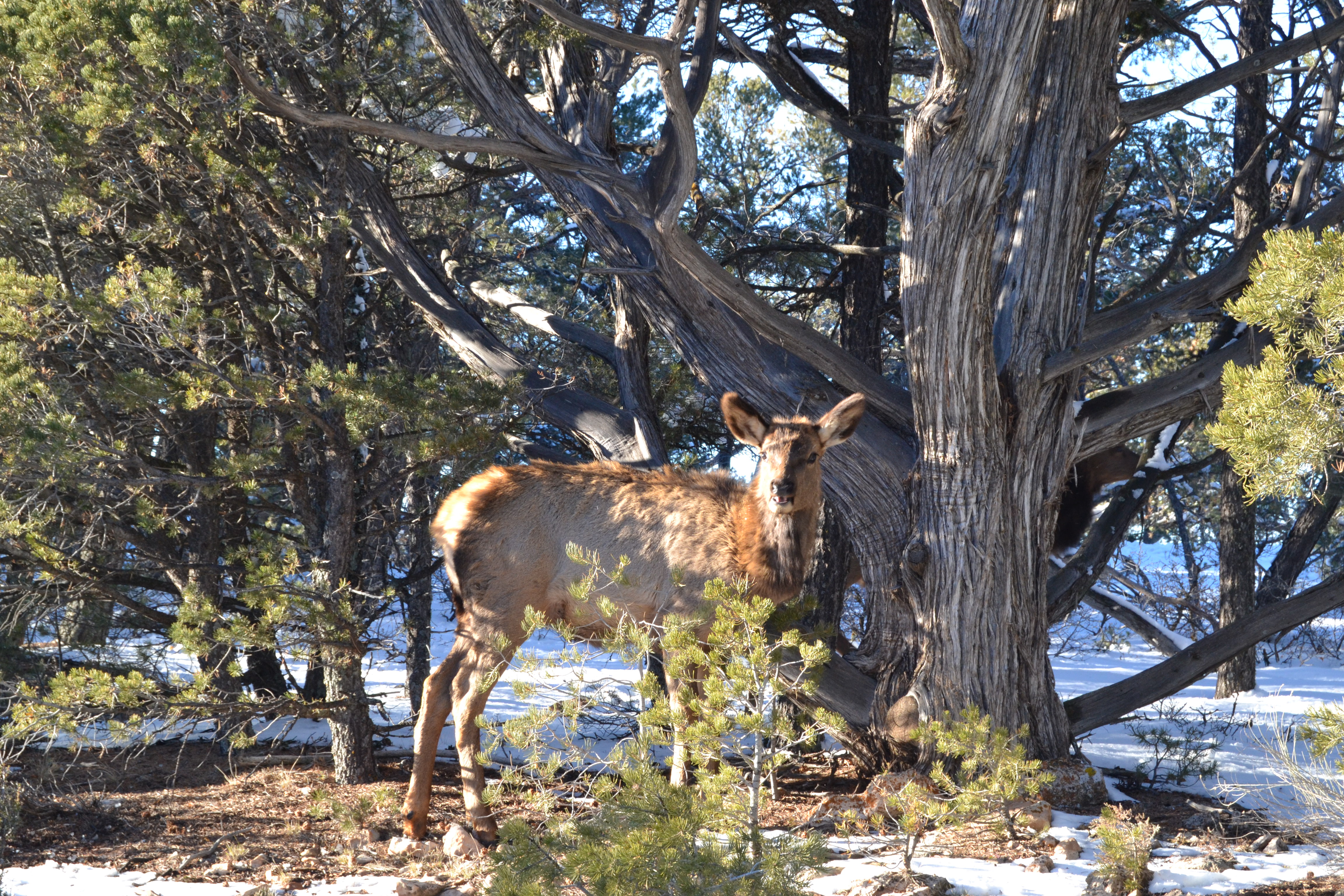 Es war der Hammer. Die endlosen Weiten der Canyons, die schönen Schneeberge und dazu der tolle Colorado River. Wir machten an jedem der vielen Aussichtspunkte Halt und genossen die gigantische Landschaft. Amerika ist absolut facettenreich und hat so viel zu bieten. Direkt vor uns haben dann sogar Mul deers (Foto) die Straße gewechselt. Wir blieben bis zum schönen Sonnenuntergang.
