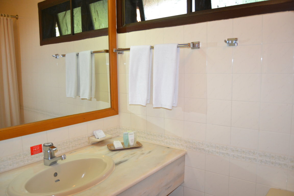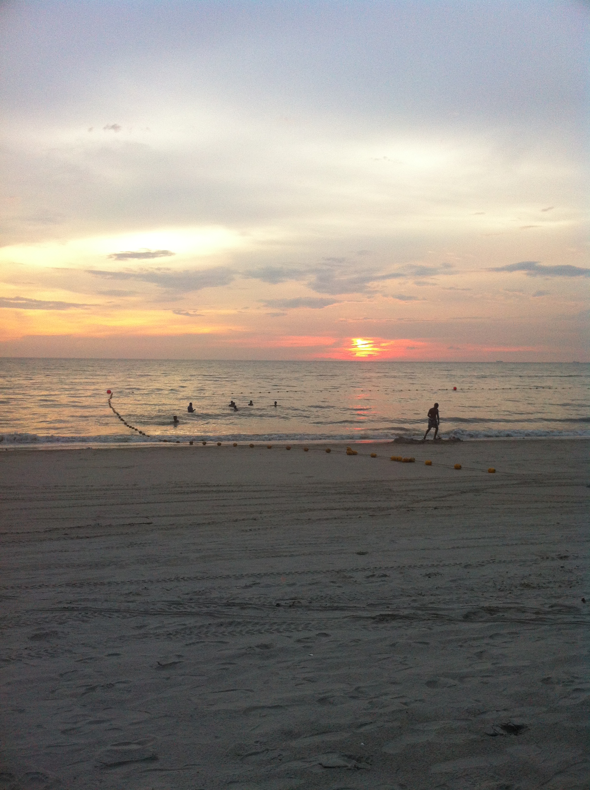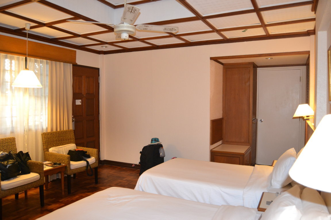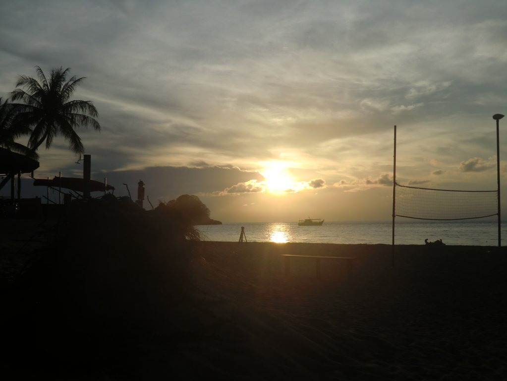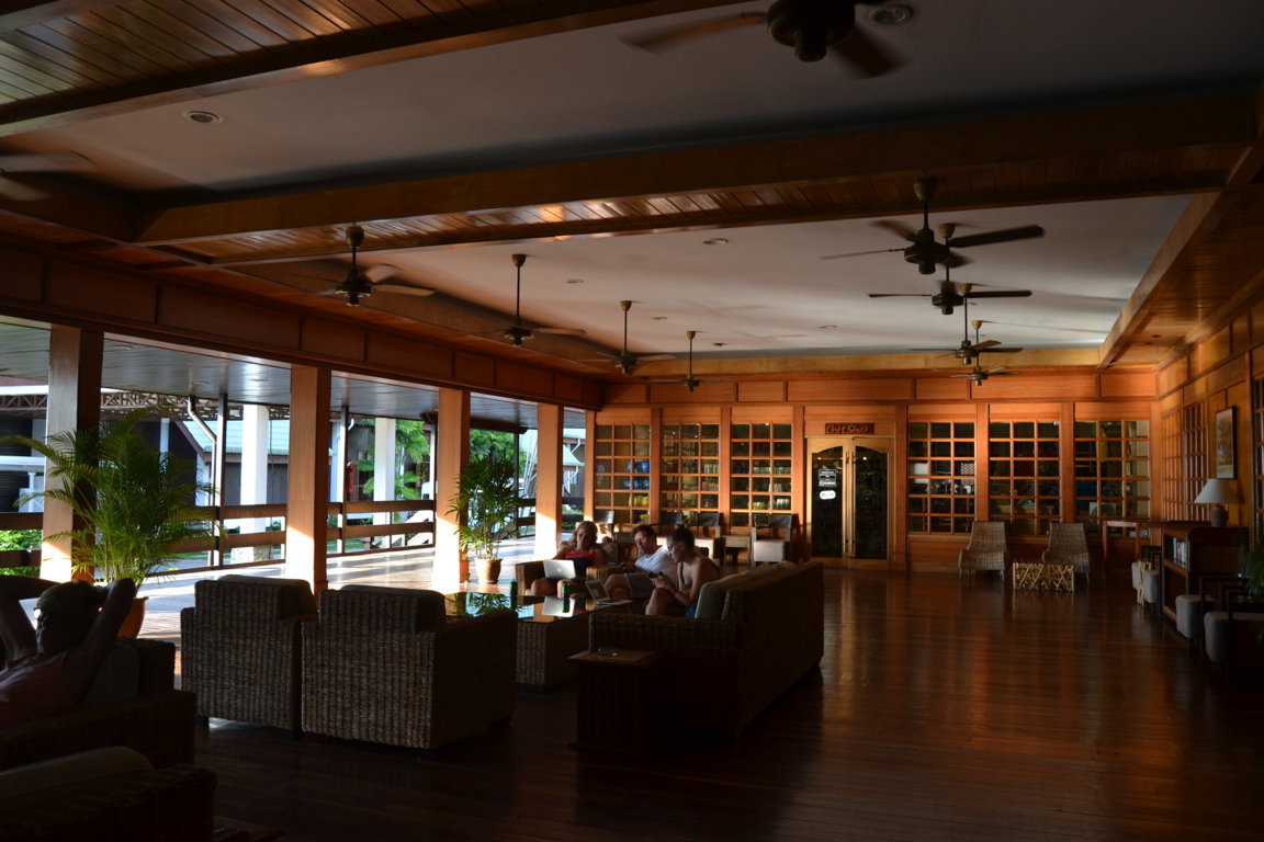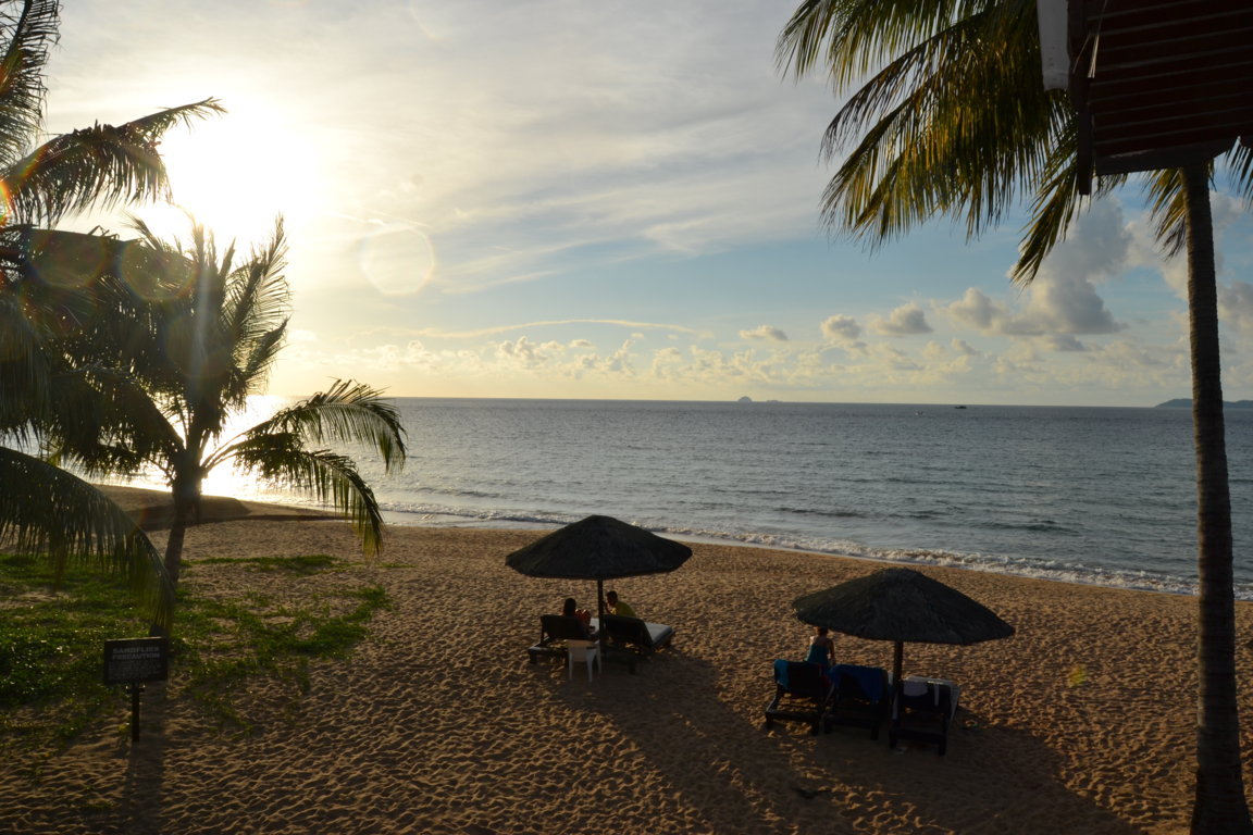 Als wir mit dem Luxusfahrzeug kostenlos vom Pier zum Hotel gefahren wurden, unser Gepäck zur Lobby gebracht wurde und wir einen Gutschein für einen Willkommensdrink erhielten, kamen wir aus dem Staunen nicht mehr heraus: Pool mit Rutschen, Fitnesscenter, Luxushotel, gepflegte, große Anlage, ruhig, Raum mit Spielen, inkl. Frühstück und vielem mehr. Für 25€ pro Person zwar so viel wie ich für eine Woche Hostel zahle, aber ich bin unendlich froh mir das zu gönnen. Unser Chalet ist direkt am Strand, wir haben einen Balkon mit Meerblick, direkt am Pool, es gibt eine Minibar, kostenlose Getränke, TV, warme Dusche mit Duschvorhang, Safe, wir haben ein großes, weiches Bett mit Decke, es ist penibel sauber, es hat viel Platz, eine Klimaanlage und vieles mehr. Seit langem muss ich nicht mehr meine eigene Decke benutzen, kann ohne Flip Flops duschen, brauche kein eigenes Duschgel, kein Vorhängeschloss, hab kein Stockbett, brauche kein eigenes Klopapier, kein teueres Taxi, muss nicht warten bis ich ins Bad kann, muss kein Frühstück suchen und fühle mich wie bei einer Pauschalreise im 5* Hotel.