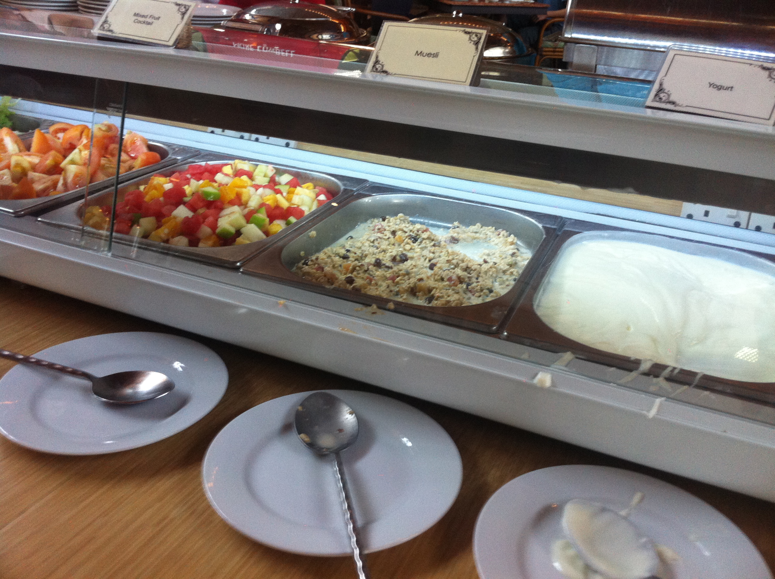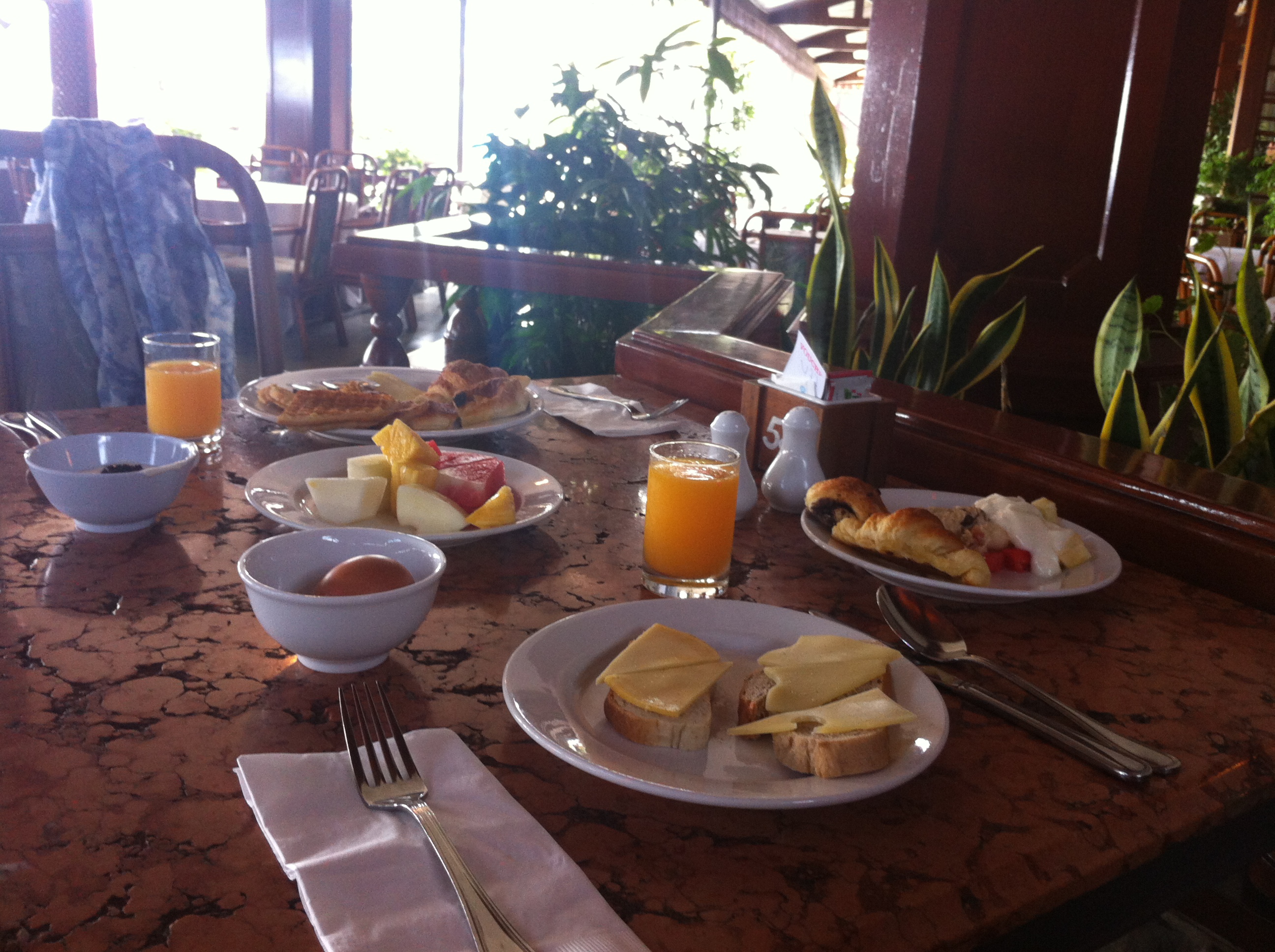 Beim Frühstück fielen mir fast die Augen aus dem Kopf. Es gab ALLES was das Herz begehrt und mehr als bei einem Brunch in Deutschland. Von Brot, bis Schokocroissant, alle Obstsorten, Müsli, Joghurt, Ei das vom Koch auf Wunsch zubereitet wurde über Nudeln mit Sahnesoße, Reis, Suppen bis Macaroni mit Tomatensoße und vielem mehr. Nach zweieinhalb Monaten konnte ich endlich mal wieder in den Hochgenuss eines Käsebrotes kommen 😛 ich hatte den grandiosen Geschmack schon vergessen.