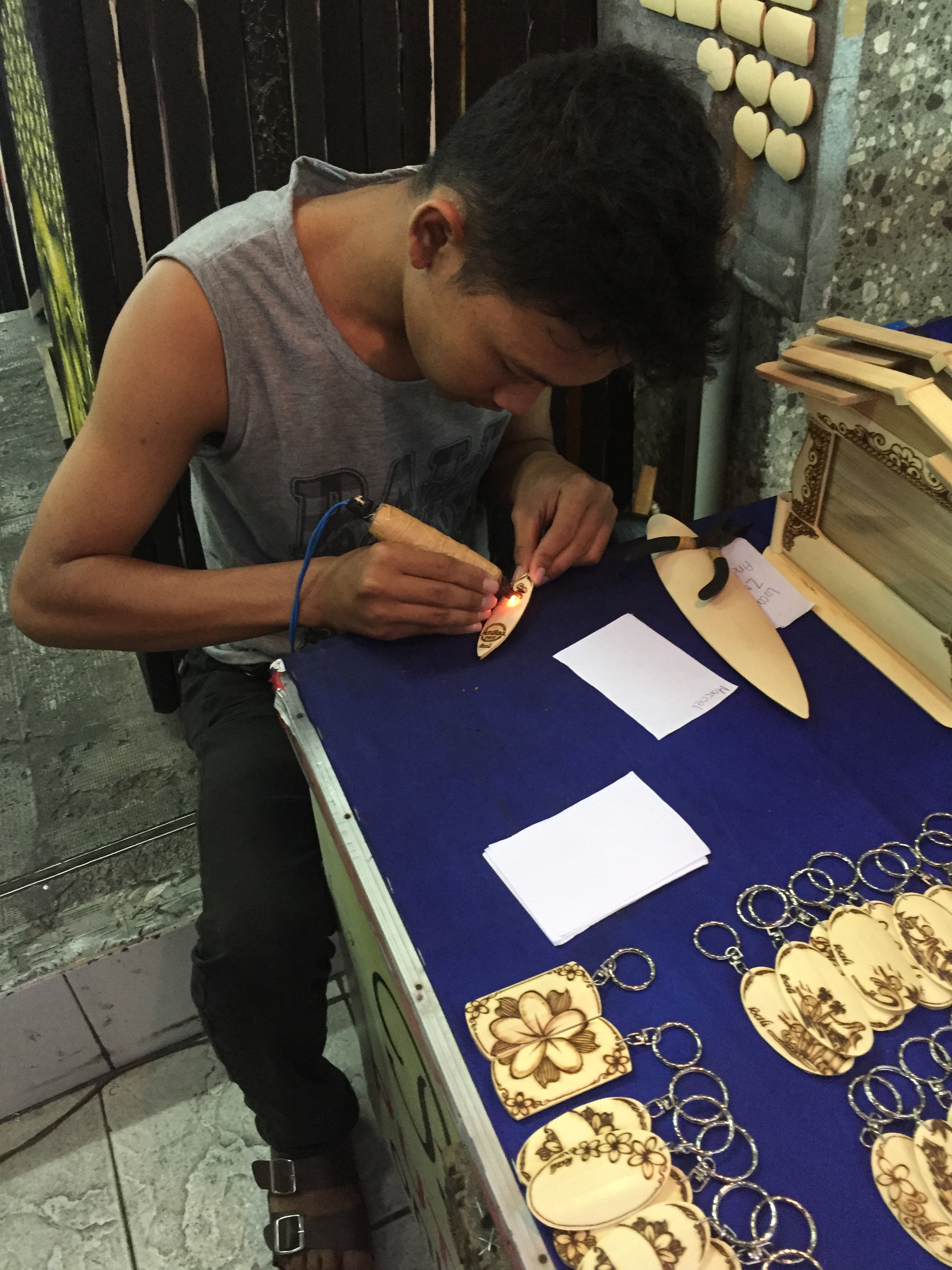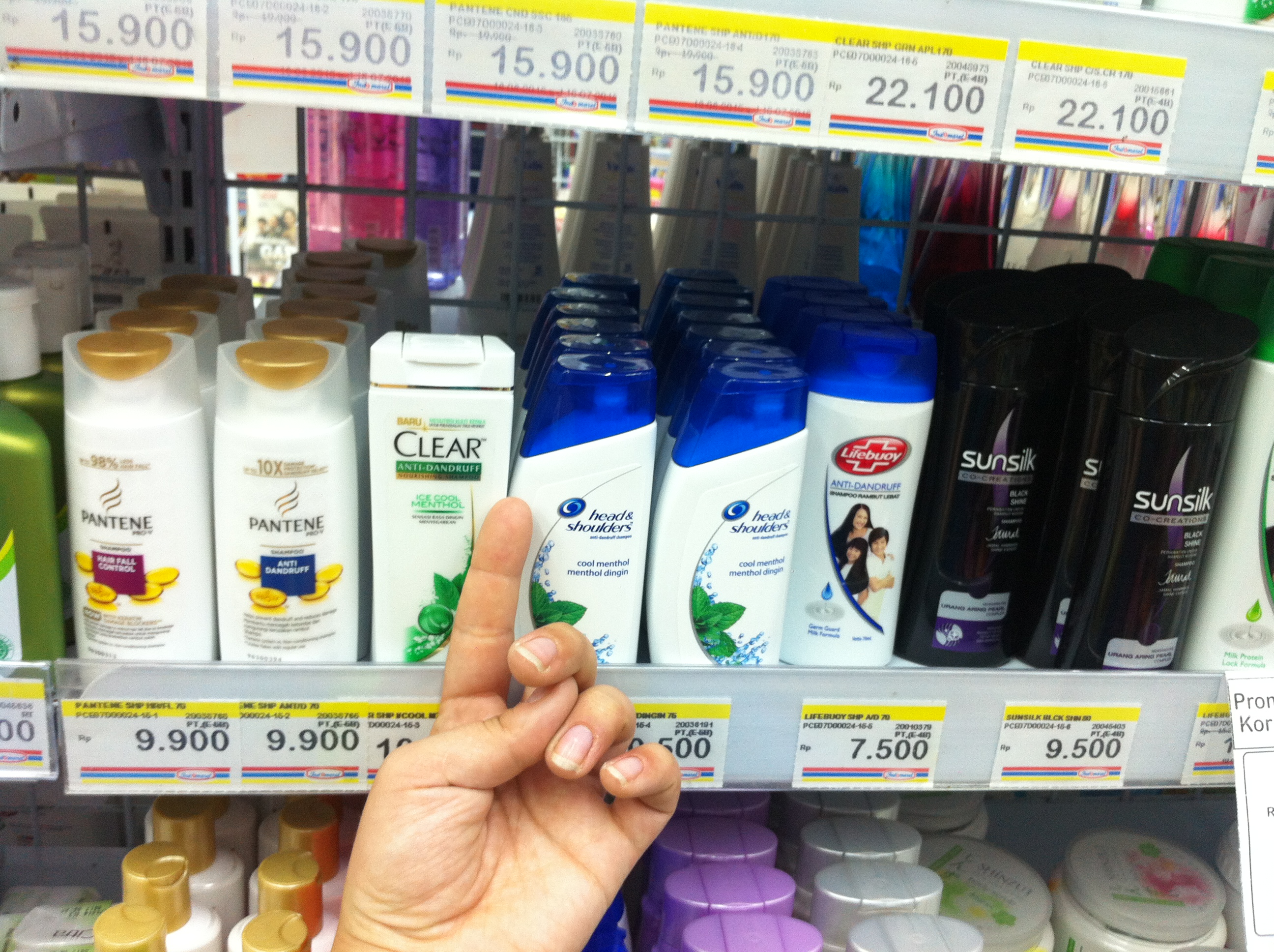 Zum Nachtisch teilten wir uns einen Schokopfannkuchen. Diesen hätte ich mal lieber weg lassen sollen, denn danach wollte ich eine Hose kaufen. Leider hatte ich meine kurzen Hosen nicht eingepackt (wie immer ziemlich „clumsy“). Im Land der kleinen, zierlichen Leute ein schwieriges Unterfangen. Als ich Größe M nicht mal über meinen Allerwertesten gezogen bekam, war das schon nicht erfreulich. Als die Verkäuferin in den Tiefen des Lagers nach Größe XL kramen musste und mich schon mitleidig ansah, verging mir die Lust, aber ich kaufte die Hose trotzdem. Ziemlich schockiert legte ich meine Rupiah auf den Tisch und verließ fluchtartig den Laden.