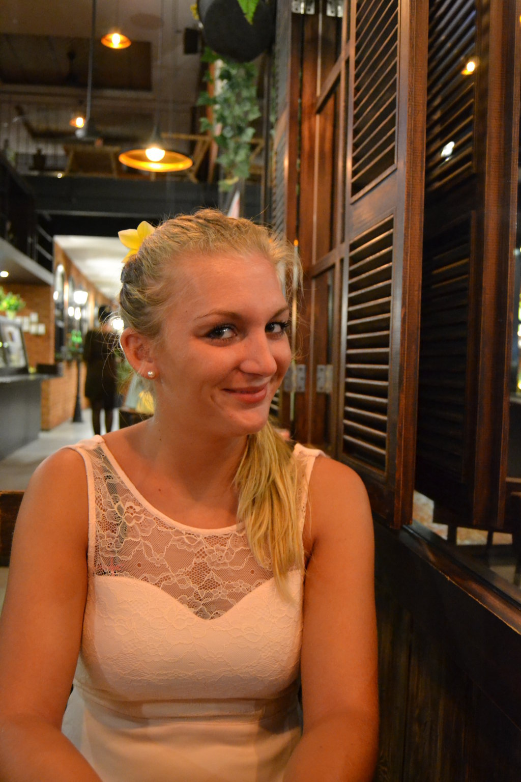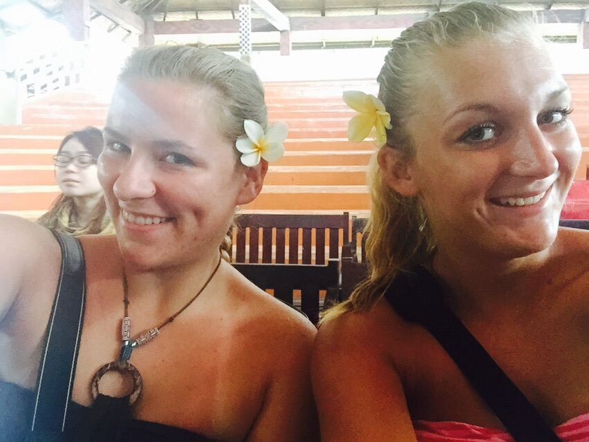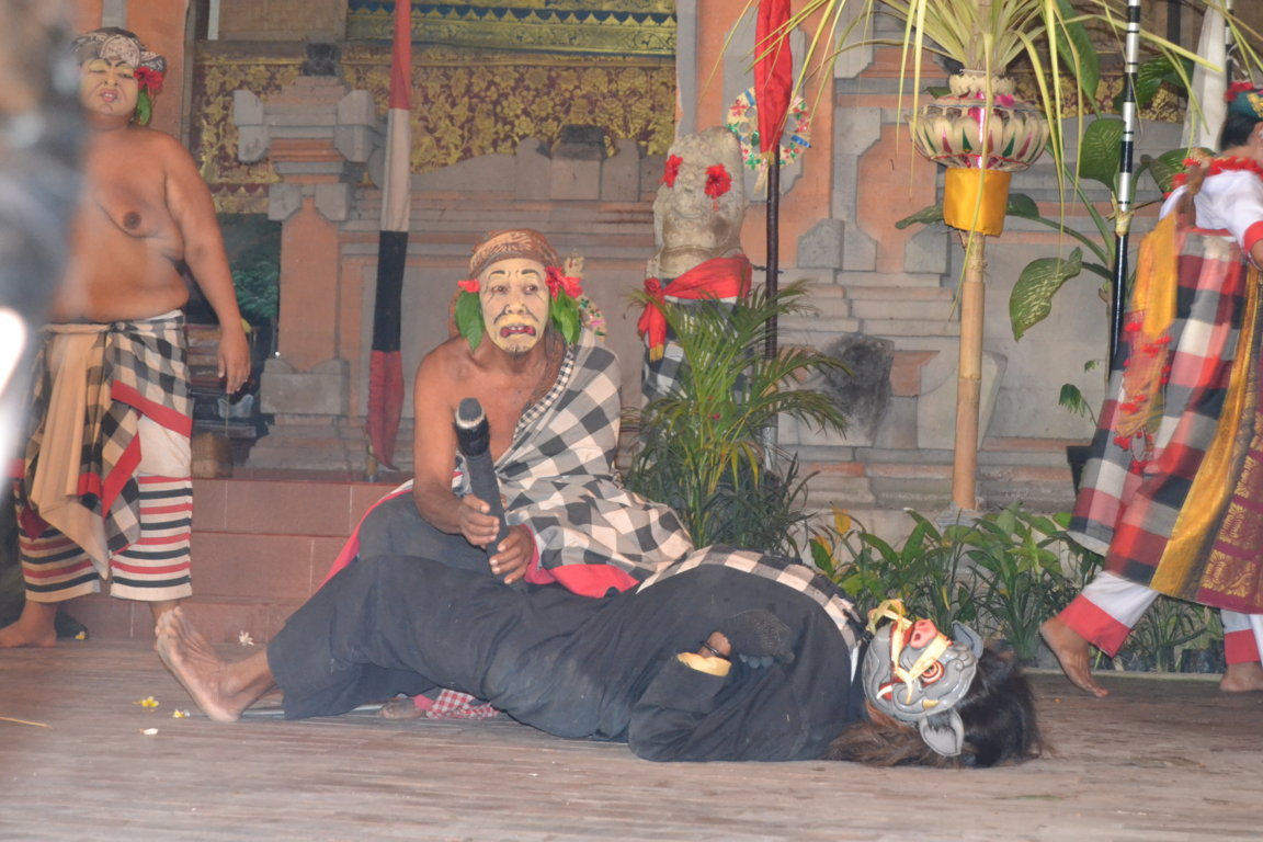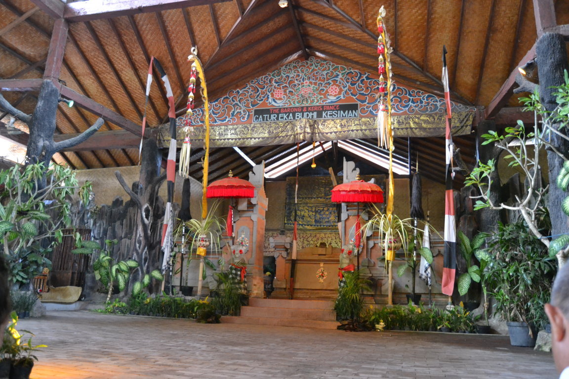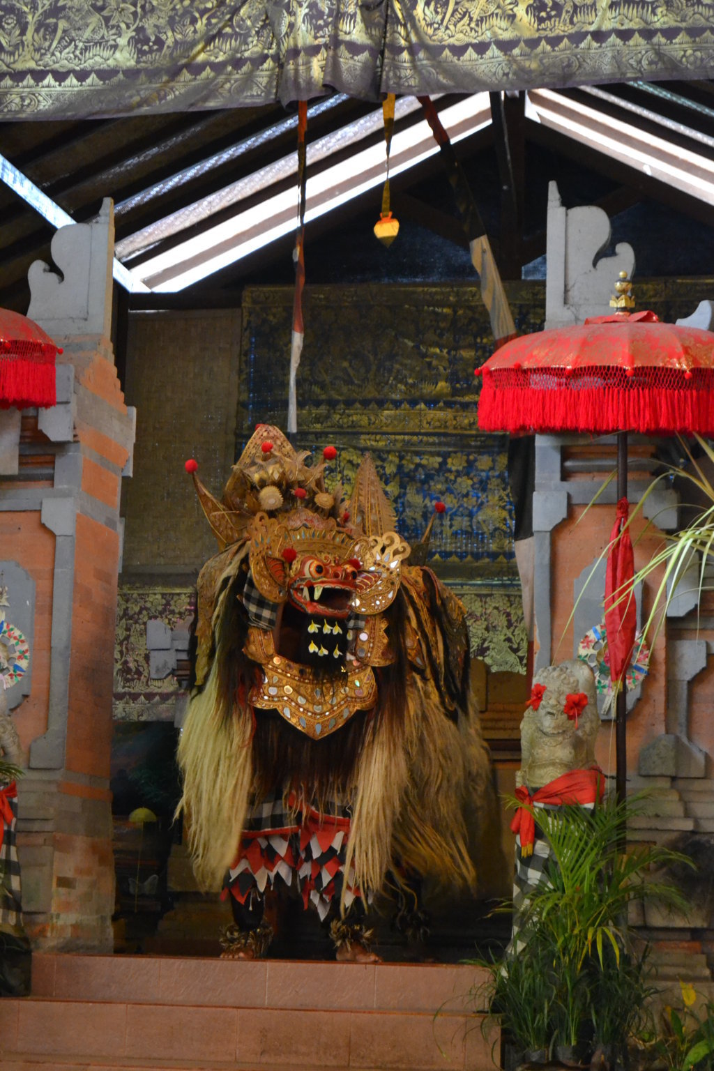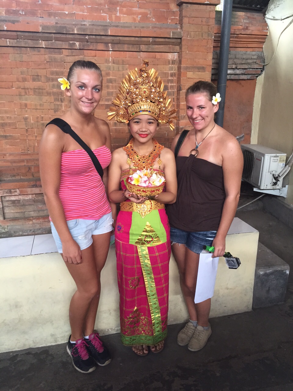 Das erste Highlight war der Barong & Kris Dance in Kesiman. Das ist ein traditioneller Tanz, dargestellt in einer Art Musical. Der Raum roch gut nach Räucherstäbchen, wir haben gleich Blumen ins Haar bekommen und ein Foto mit einem schön gekleideten Mädchen gemacht.