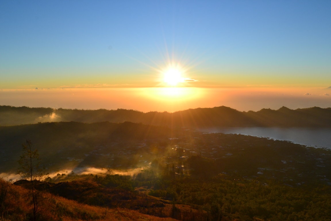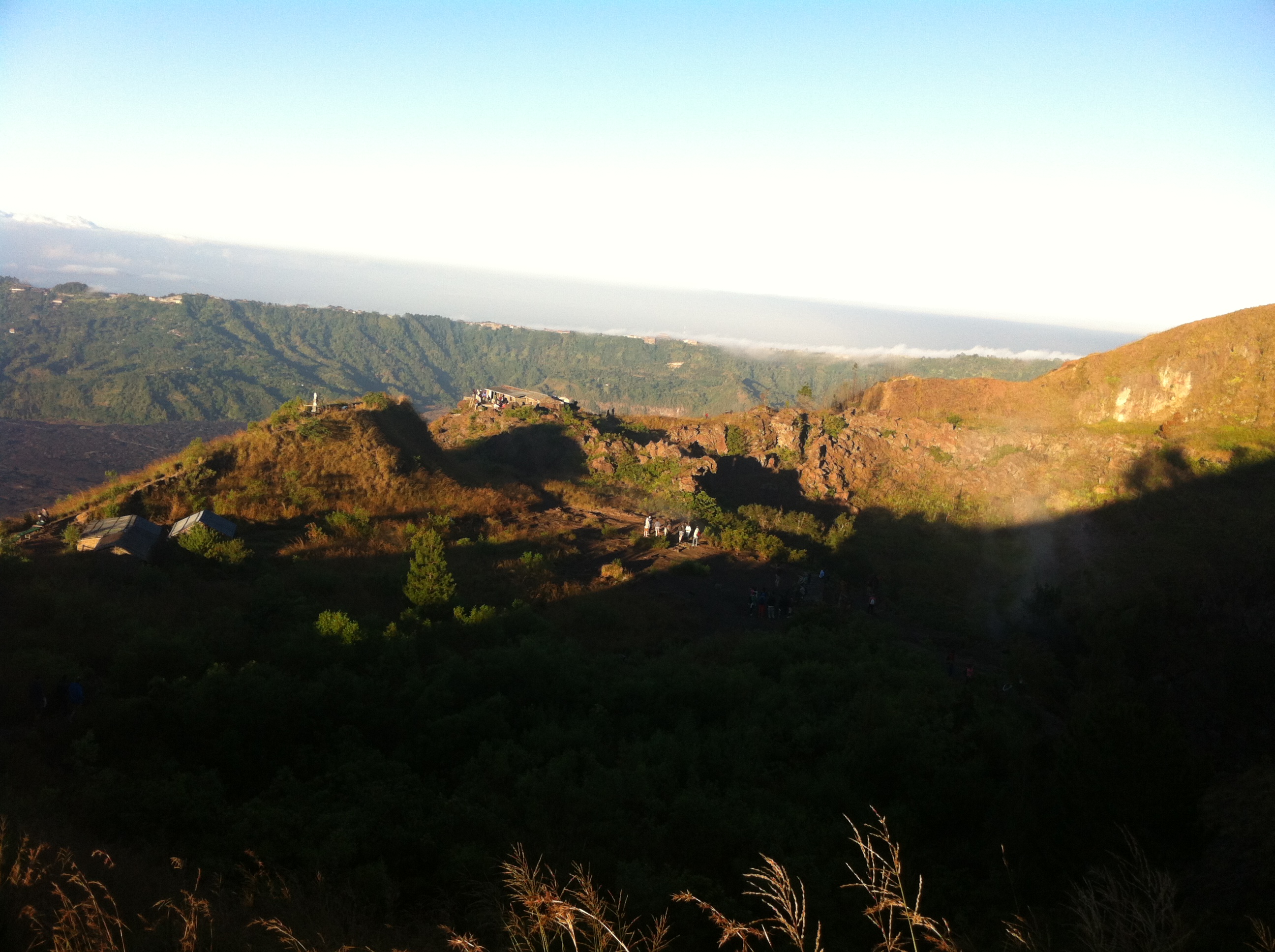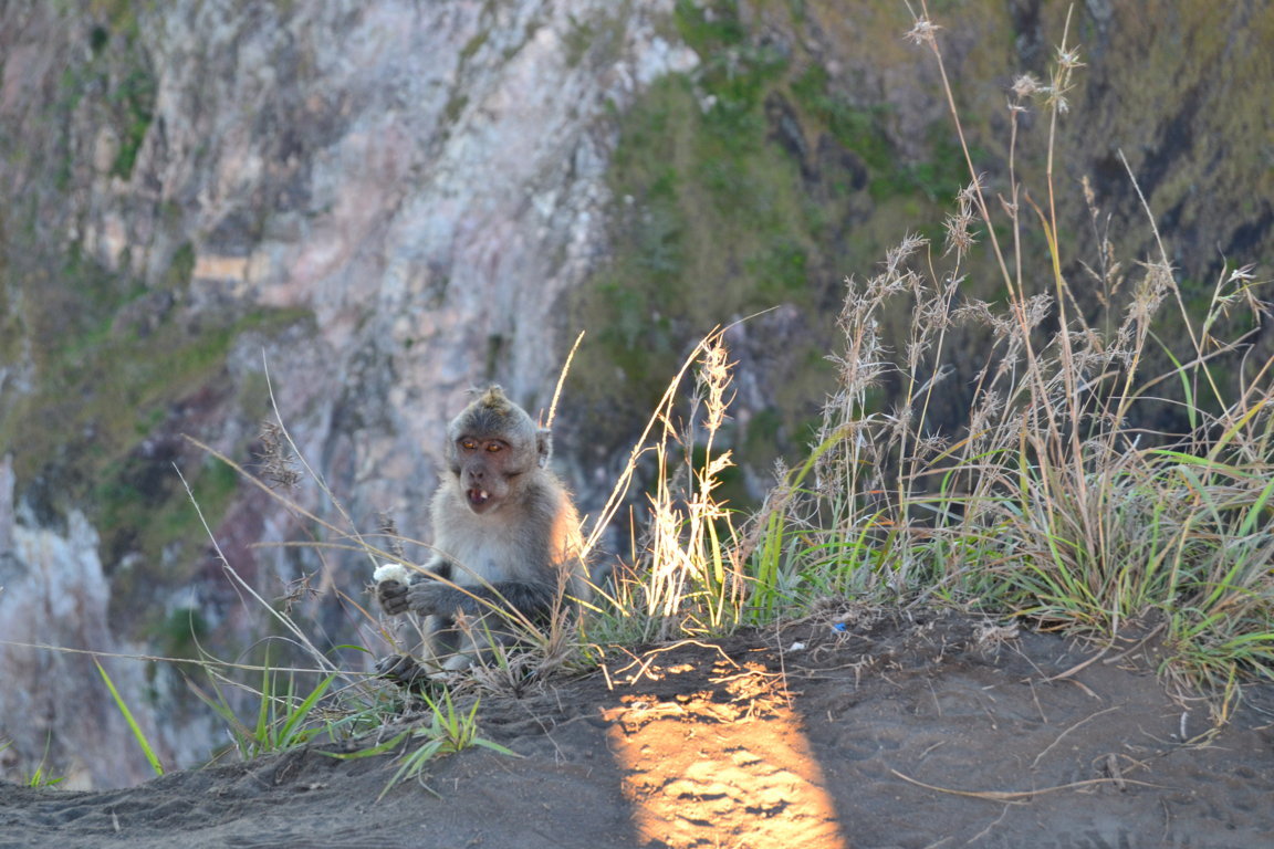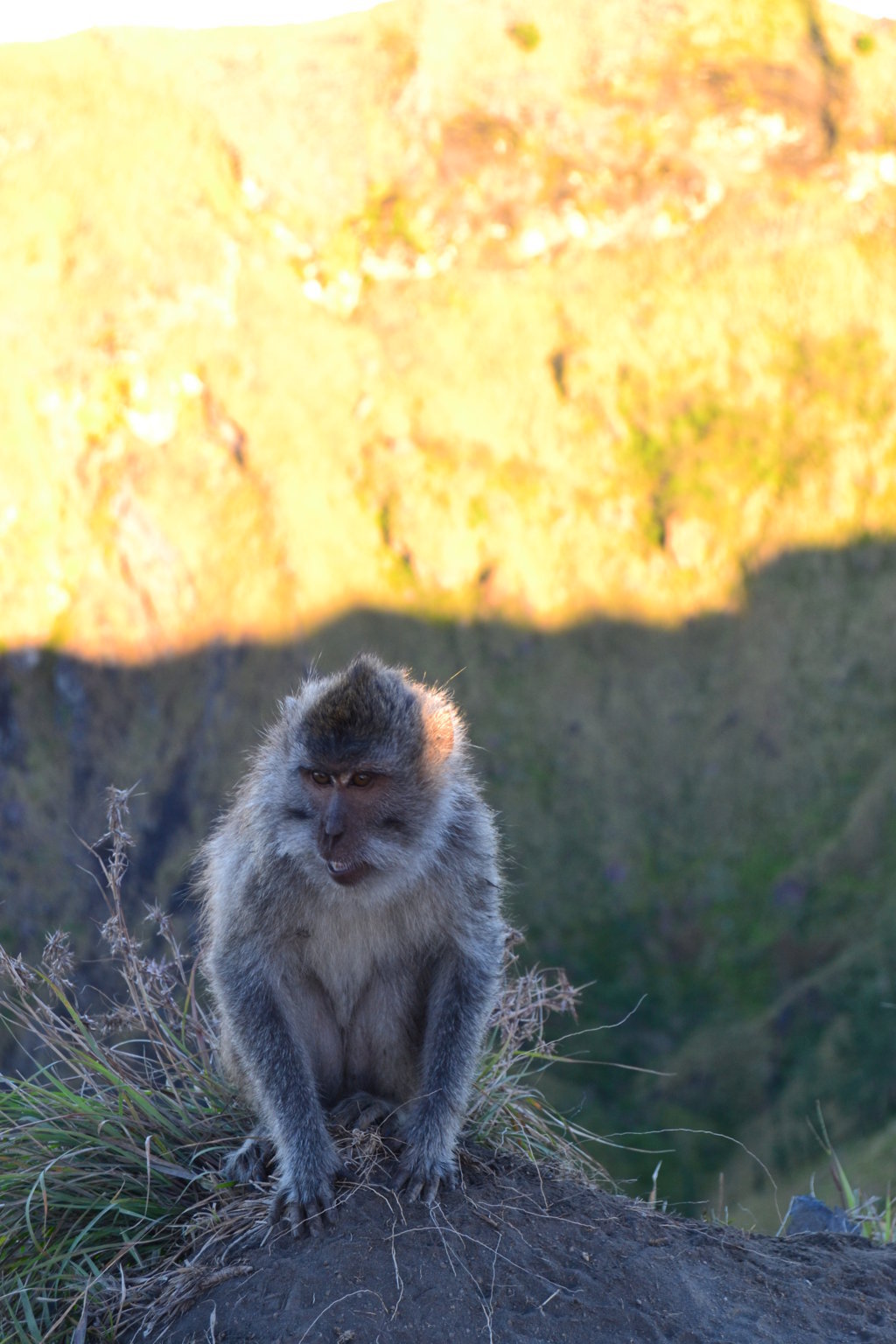 Der Sonnenaufgang war dafür atemberaubend. Die Sicht war total klar und als die Sonne langsam hinter dem Berg vor kam, sah das wirklich faszinierend aus. Wer kann schon sagen einmal einen Sonnenaufgang auf einem Vulkan gesehen zu haben? Um uns rum rannten die ganze Zeit viele Affen die sich wilde Kämpfe lieferten. Doof nur, dass ich jetzt einen riesigen Respekt vor denen hab. Leider war die Hölle los auf dem Gipfel und der Massentourismus nervt auch hier gewaltig. Wir sind mit 3 anderen Deutschen ins Gespräch gekommen, die zu 3. so viel gezahlt haben wir eine von uns allein, was uns sehr sauer machte. Überall wird man abgezockt! Hier haben wir auch so viele Deutsche gesehen wie noch nie davor auf Bali.
