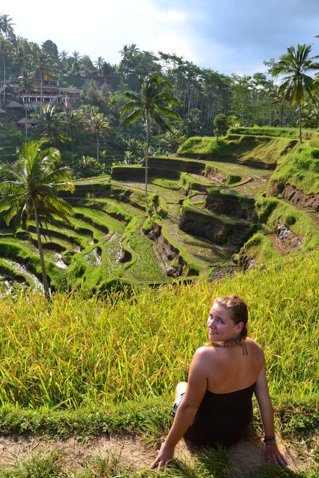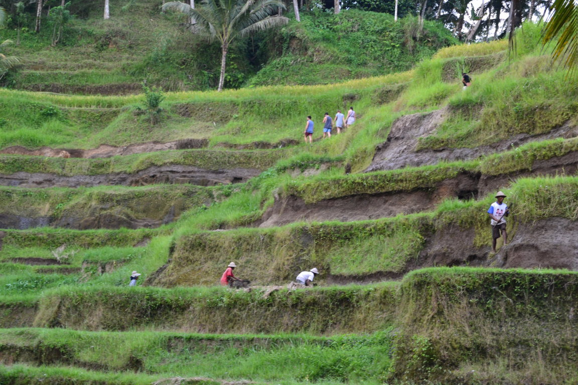 Beeindruckend waren auch die Tegalalang Reis Terrassen in Ubud (Rice Terace). Geschickt musste man klettern, um in die Mitte zu gelangen, von wo aus man die beste Sicht hatte. Ein Farmer rief uns Hati Hati hinterher (seid vorsichtig!).