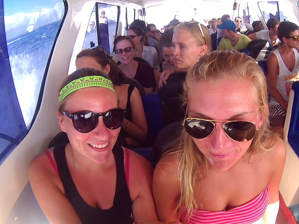 Als wir sicher auf der anderen Seite ankamen, fühlte sich erst kein Fahrer für uns zuständig. Wir erklärten wir haben auch für den Heimtransport bezahlt und nach viel hin und her saßen wir im Kleinbus. Der Fahrer kannte aber nicht mal unser Hotel. Mitten auf der Fahrt hielt er auf der Hauptstraße an und sagte uns wir sollen dort auf den richtigen Fahrer warten, der unterwegs ist. Da machten wir aber einen Aufstand. Zwei blonde Mädels, in der Dämmerung, in Indonesien, am Straßenrand einer viel befahrenen Hauptstraße und wir wussten nicht mal ob uns wirklich jemand abholt und falls ja, dieser jemand uns auch findet – vieeeel zu gefährlich !