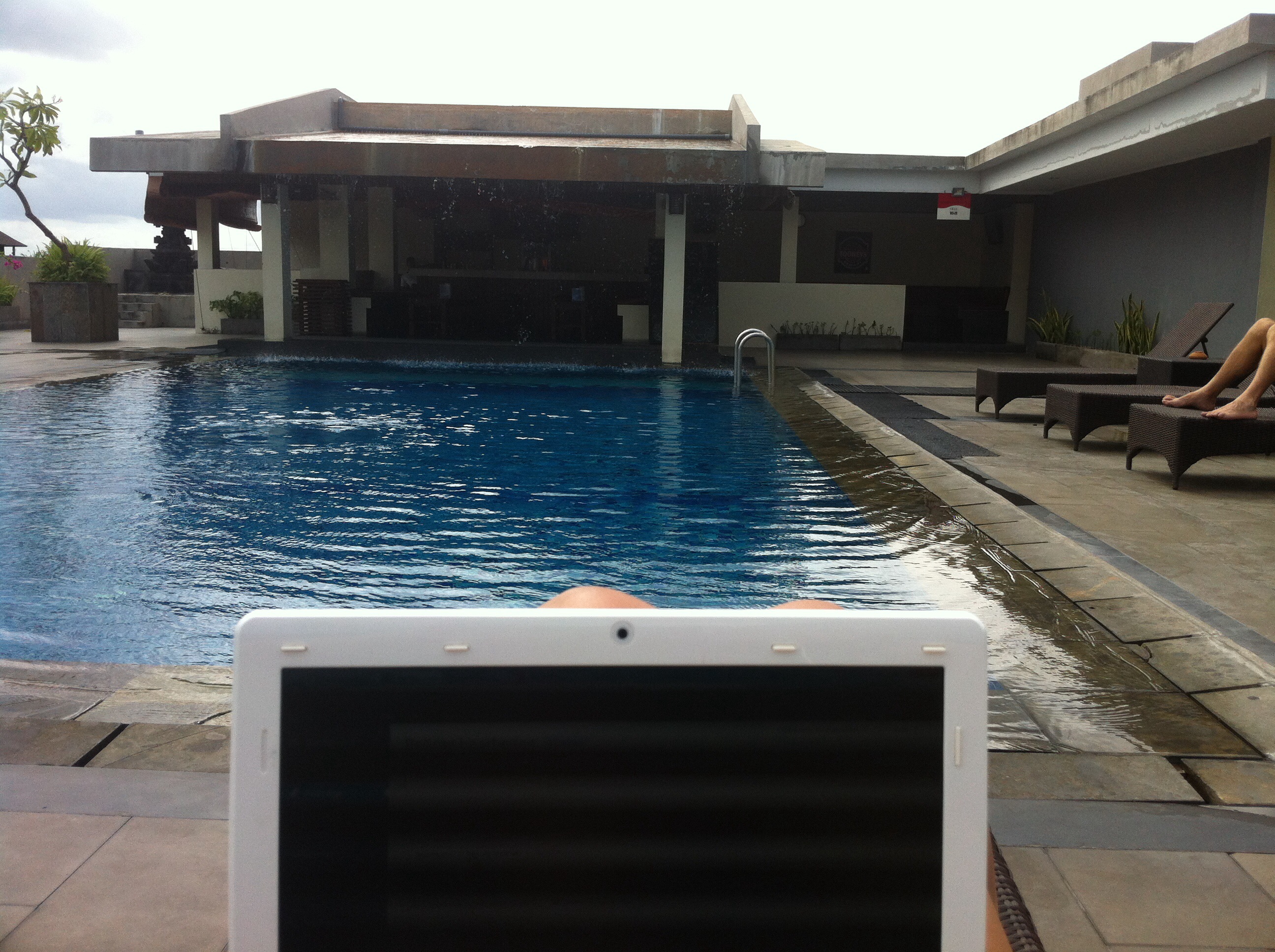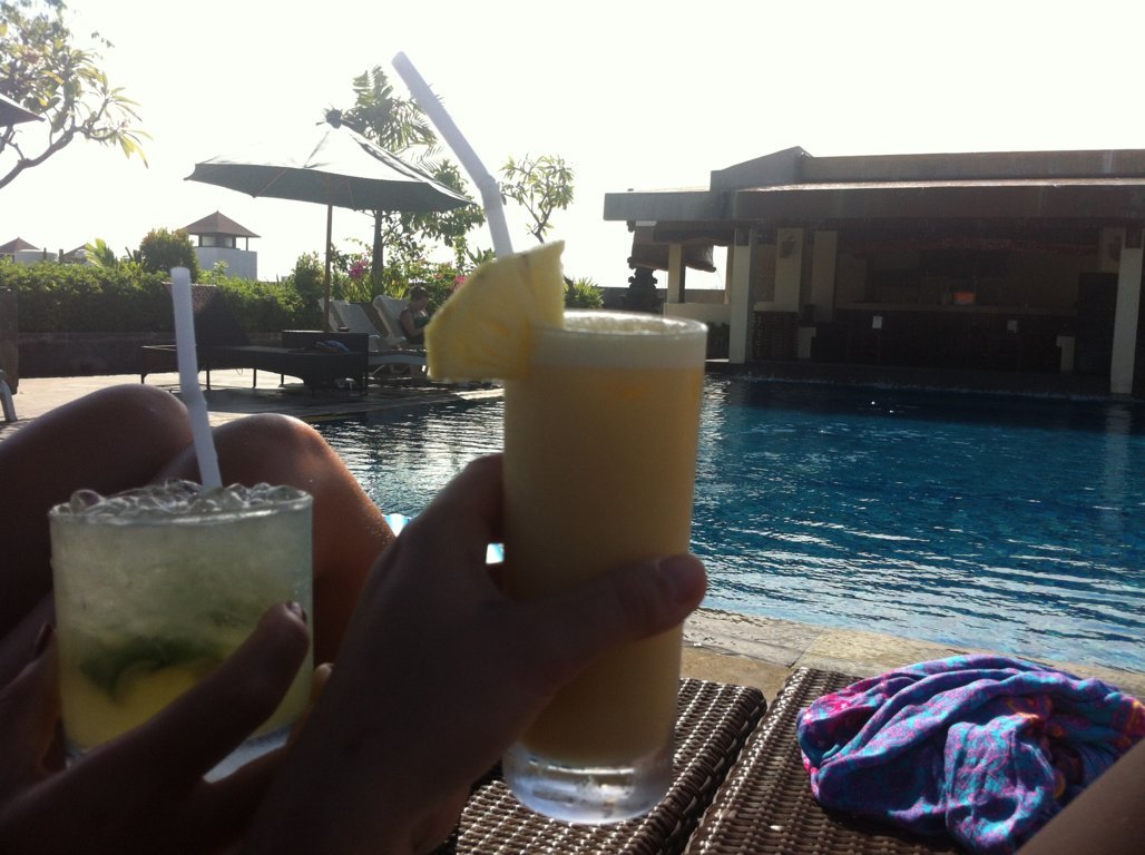 Am Pool kann man gut mit der Familie skypen und Jungs beobachten. Einer hat das Buch „Angela Merkel“ gelesen und ich bin gaaaanz unauffällig an deren Seite ganz viele Bahnen geschwommen um zu hören, ob es Deutsche sind (gibt sehr wenige hier, dafür viele Australier). Leider wollten die einfach nichts reden und als ich schon fast ertrank, gab ich auf. Saskia lag vor Lachen fast am Boden. Zuvor hatten wir uns laut auf deutsch unterhalten, weil wir dachten es versteht uns keiner – fail ! würde ich sagen 😀