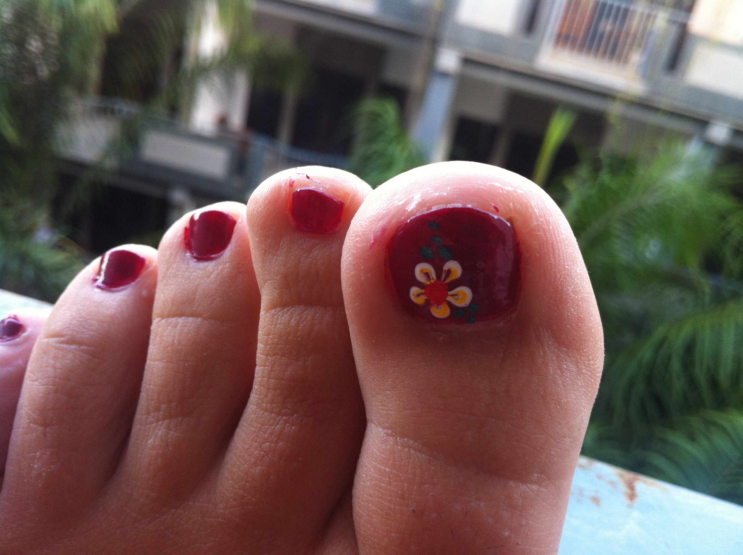 Die beiden Frauen die uns behandelt haben, waren sehr nett. Mit viel Geschick verzierten sie die Nägel und wir bekamen sogar Blumen drauf gemalt, die mit Zahnstochern gemacht wurden. Das sah richtig toll aus. Die beiden Frauen taten uns aber sehr leid. Sie arbeiten beide schon lange hier, aber niemand dankt es ihnen, sie müssen 6 Tage die Woche arbeiten, haben keinen Urlaub und bekommen gerade mal 180$ im Monat ! So ist es verständlich, dass die eine über eine Stunde weit weg lebt, weil die Wohnungen hier mit 70$ im Monat zu teuer sind. Beide haben kleine Kinder und müssen zusätzlich pro Kind 8$ im Monat für die Schule zahlen, was bei dem Gehalt viel ist. Außerdem sehen sie ihre Kinder nicht oft, weil sie so viel arbeiten müssen. Ja klar, bestimmt haben sie es uns auch erzählt um ein bisschen Mitleid zu erregen, aber aus der Luft gegriffen war es bestimmt auch nicht. So gab ich die 5$ Trinkgeld gerne.