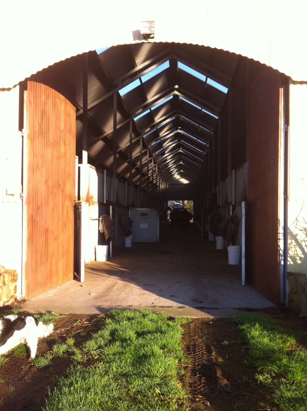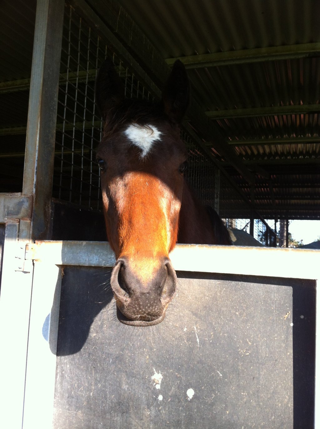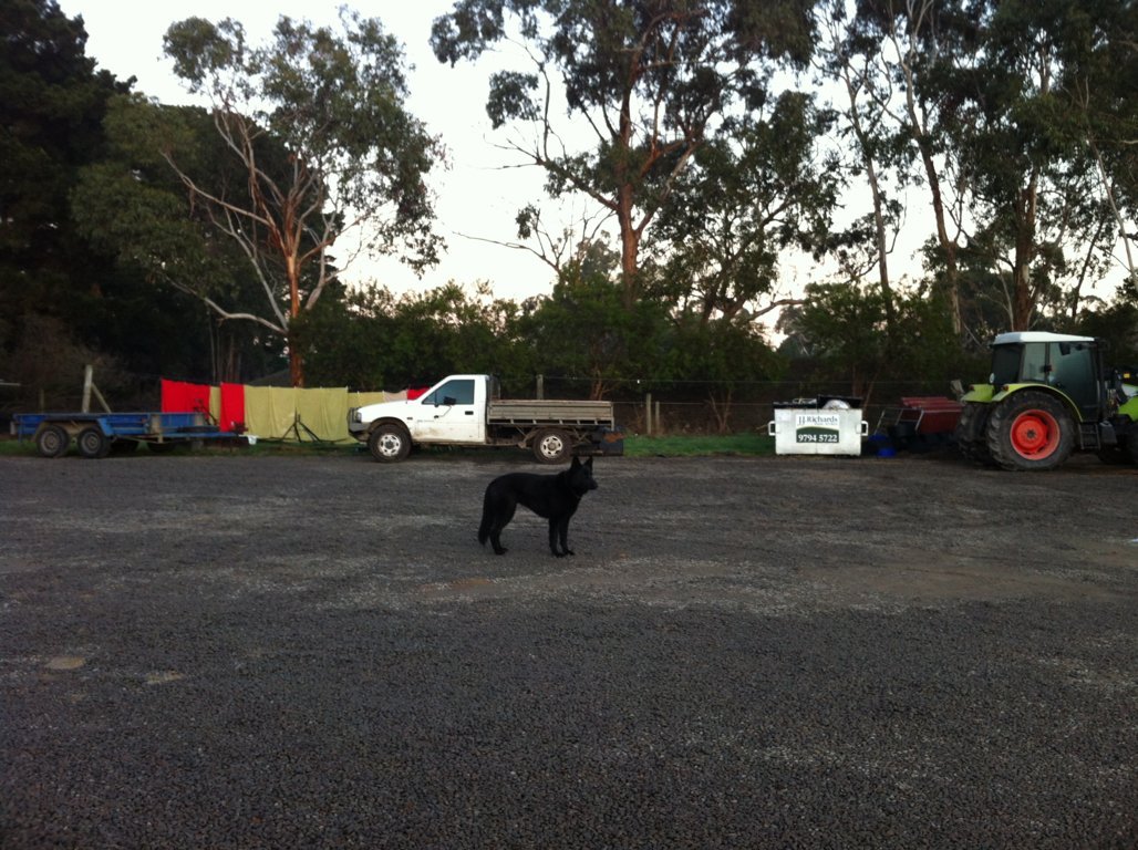 Am Donnerstag sind die ersten 3 Pferde in den neuen Stall eingezogen. Diesen hat Jack fast allein gebaut. Er ist 1km von der Farm weg, mitten im nirgendwo mit 12 Boxen. Am Dienstag hat er den Stall fertig gestellt und Türen und Tränken rein gemacht. Als Jack und ich nach den Pferden schauen wollten, stand plötzlich ein Pferd mitten in der Stallgasse. Es fraß gemütlich und tat als ob nix wäre. Normalerweise gibt es Karabiner für jede Boxentür, weil die Pferde die Verschlüsse aufmachen können, aber im neuen Stall fehlten die noch. Leider gab es auch keine Halfter und Jack wollte das Stalltor zu machen, dass das Pferd nicht abhaut. Das fand der Wallach nicht lustig und erschrak. Jack fuhr dann mit dem Auto los um ein Halfter auf der Farm zu holen. Ich versuchte den Wallach an der Decke in seine Box zu ziehen. Das klappte nicht und er stand da wie festgenagelt. Nach einigen Versuchen nahm ich meine Jacke, band sie ihm um den Hals und zog an den Ärmeln. Zum Glück klappte das und das Pferd war wieder in seiner Box. Zurück zur Farm durfte ich endlich mal mit dem Bobcat fahren. Das ist wie ein Golfcaddy und total lustig zu fahren.