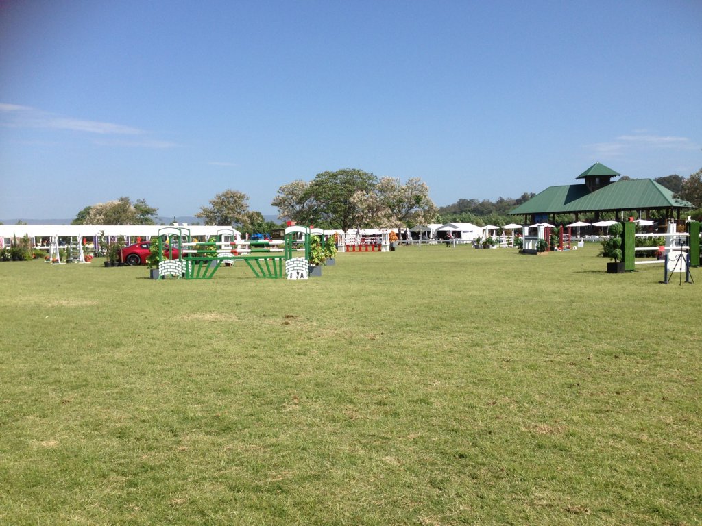Es war zwar wieder sehr heiß, aber angenehmer als am Freitag. Ich wusste nun wie alles abläuft und es war ein bisschen weniger stressig als am Vortag. Trotzdem hatte ich viel zu tun und wieder absolut keine Zeit was zu Essen zu kaufen. Diesmal war es eine andere nette Einstellerin die mir Reissalat kaufte. Ich finde es irgendwie schade, dass sich Einsteller um das Wohl der Pfleger kümmern müssen und meine Chefs mich nicht mal was kaufen lassen. Diesmal hatten sie wenigstens eine Kühltruhe und Wasser dabei und ich hatte was zu trinken. Zwei Pferde musste ich an den Springplatz bringen und ein anderes mitnehmen und so sah ich wenigstens das erste mal den Turnierplatz. Dieser ist sehr groß und wunderschön gestaltet. Es gab sogar eine VIP-Area. Wie auf dem letzten Turnier gab es 3 Ringe (Plätze), wo verschiedenen Prüfungen ausgetragen wurden.