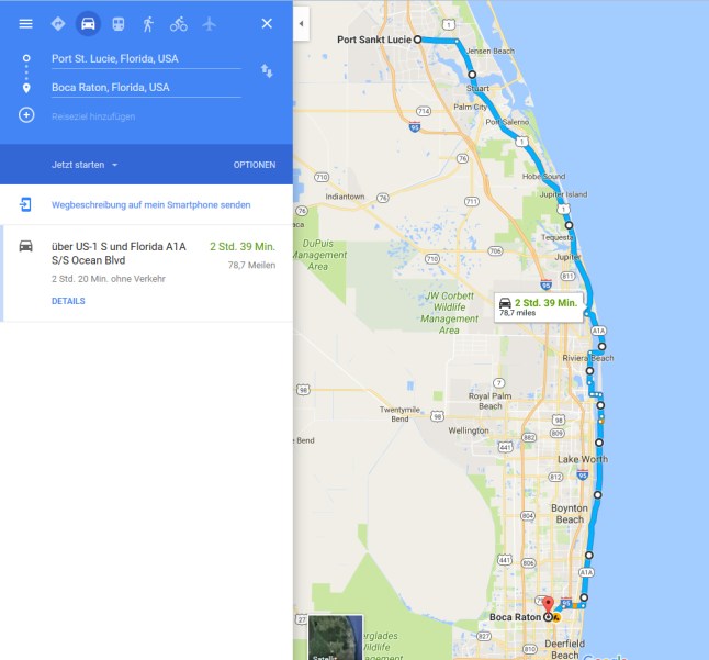 Ganz entspannt ging es weiter in Richtung Boca Raton. Das liegt total geschickt auf dem Weg nach Miami und wir fanden wieder über booking.com ein günstiges Hotel.
