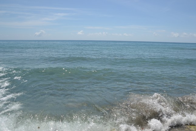 Dieses Landschaftsschutzgebiet ist ganz sich selbst überlassen und es steht eine Kasse da, wo man 2$ pro Person rein werfen sollte, was wir natürlich machten. Die beeindruckenden Kalksteinfelsen erreichten wir nach einem schönen, kleinen Wald schon schnell. Der Name „Blowing Rocks“, also „blasende Felsen“ kommt daher, weil das Wasser zwischen den Felsen meterweit in die Höhe geschossen wird. Es war super heiß und keine Menschenseele unterwegs. So konnten wir uns voll und ganz dem schönen Naturwunder hingeben und die endlose Felsen- und Sandlandschaft bewundern.
