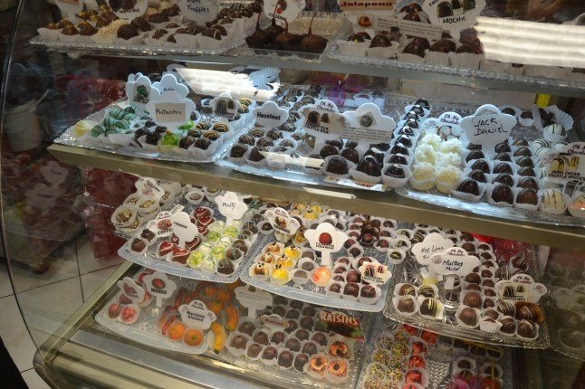 An einem kleinen Laden machten wir Halt. Alles darin ist voll mit Kuscheltieren und tausend verschiedenen Pralinen, die von der 70 jährigen Ladenbesitzerin in Handarbeit selbst hergestellt werden. Sie muss jeden Tag Stunden damit beschäftigt sein. Sie und ihr Mann führen dieses kleine Lädchen, das gleichzeitig eine Eisdiele ist, sehr liebevoll. Als wir einen Eiskaffee bestellten, guckten sie uns sehr verwundert an. Wir erklärten, dass sie uns Kaffee mit Eis machen sollten (das ist in USA nicht sehr gängig). Die beiden bekamen sich nicht mehr ein und kicherten die ganze Zeit, weil sie diese Idee so witzig fanden. Als sie es probierten, sagten sie ganz begeistert, dass das eine Marktlücke sei und sie das in Zukunft immer anbieten wollten. Wir versprachen, ihnen eine gute Bewertung auf Facebook zu geben (ja, die beiden haben Facebook) und sie schenkten jedem von uns ein Kuscheltier als Andenken.