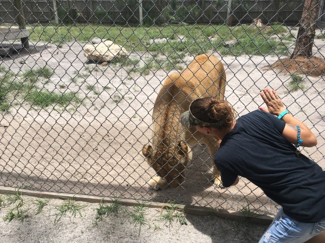 Bei den Wildkatzen wurde es noch viel spannender. Es gibt Löwen, Tiger, Luxe und einen Liger (Mischung aus Löwe und Tiger), denen man total nahe kommt. Der Liger war am Interessantesten, da diese Kreuzung in freier Wildbahn gar nicht vorkommt. Liger können sogar die Laute von Löwen und Tigern von sich geben. Diese sind die größten Raubkatzen und tatsächlich war diese hübsche Dame riesig. Es war richtig faszinierend, wie gut die Pflegerin die Tiere kannte, mit was für einer Leidenschaft sie das machte und wie sie mit den großen Raubkatzen spielte, ohne in das Gehege zu gehen.
