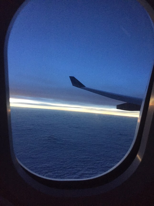 Mir knurrte der Magen, weil es bei Eurowings ja nichts zu essen gibt und ich seit dem Vorabend nichts gegessen hatte. Leider gab es erst zweieinhalb Stunden später, um halb 8 Abendessen, aber Marie besorgte mir ein Stück Kuchen über das ich sehr froh war.