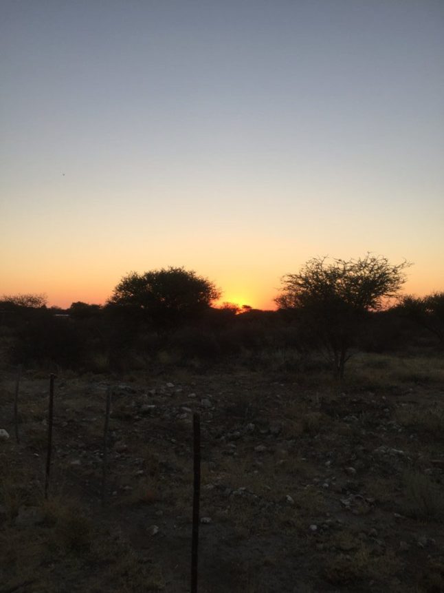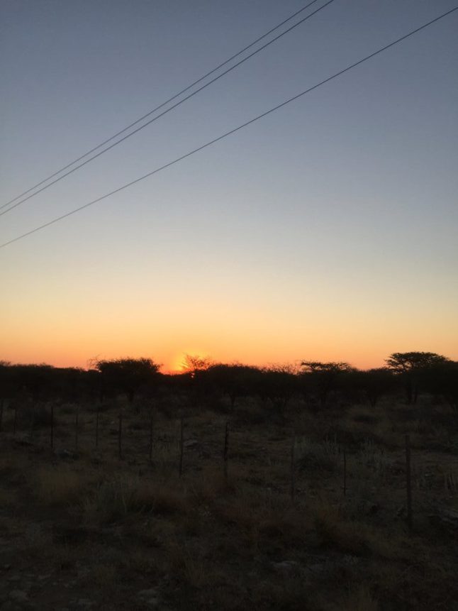 Morgens hatten Laura und ich keinen Ritt und Viva machte mit uns mit dem Jeep eine Tour. So sollten wir die 80 Hektar große Farm kennen lernen und uns mit den Wegen vertraut machen. Das war richtig super, denn mit der Karte bewaffnet, konnten wir genau mit verfolgen wo wir waren. An diesem Morgen fragte ich mich zwar immer noch, wie ich es je schaffen sollte hier die Orientierung zu behalten, aber diese Tour war super hilfreich. Außerdem hatte dieser Ausflug noch den super positiven Nebeneffekt, dass wir viele Tiere sahen. So waren es erst noch Impalas und dann plötzlich Giraffen die wir antrafen. Außerdem stießen wir auf eine riesige Herde Gnus und als Highlight rannten Zebras neben dem Jeep her. Das hätte keiner von uns erwartet und war richtig cool.