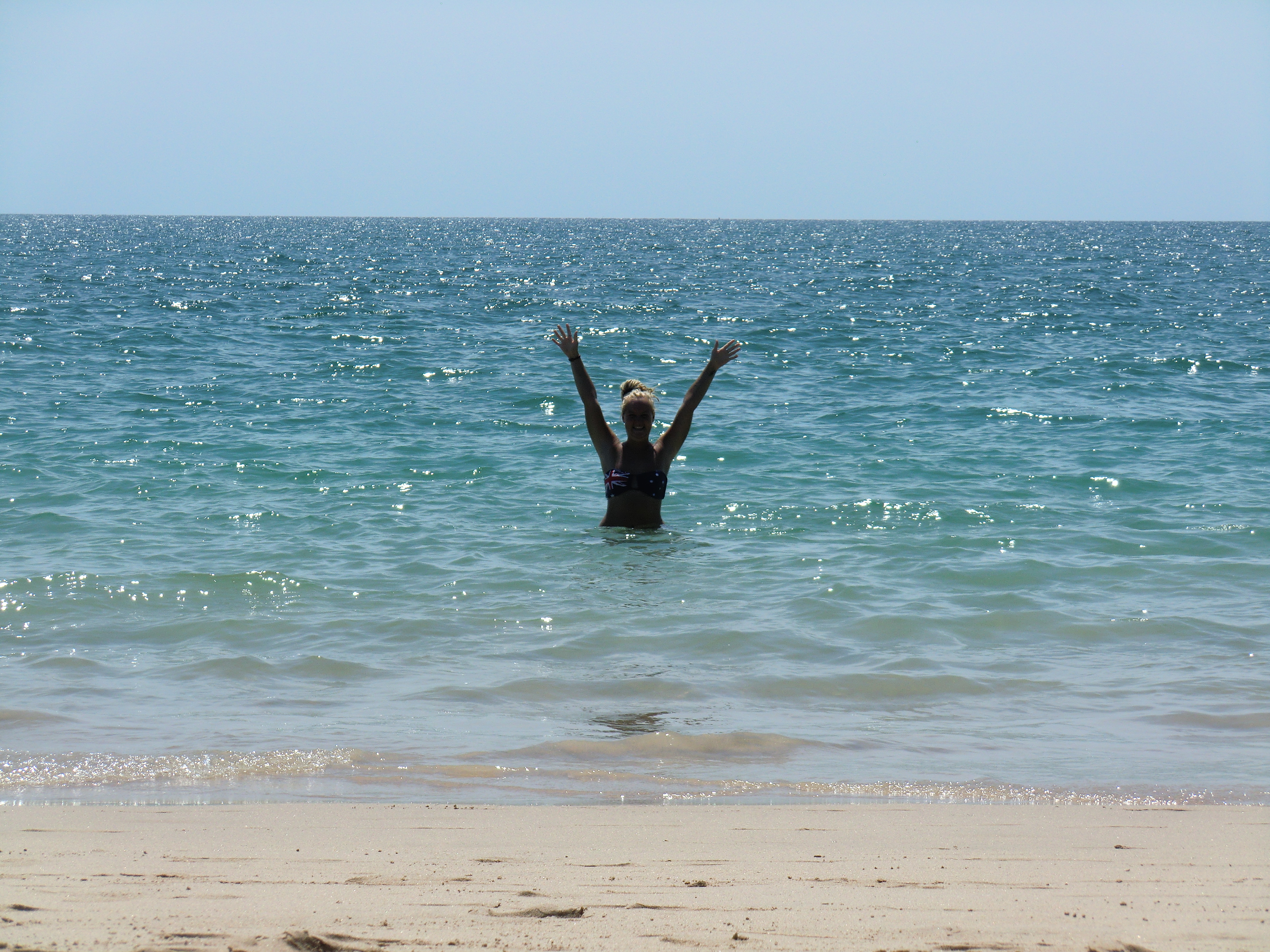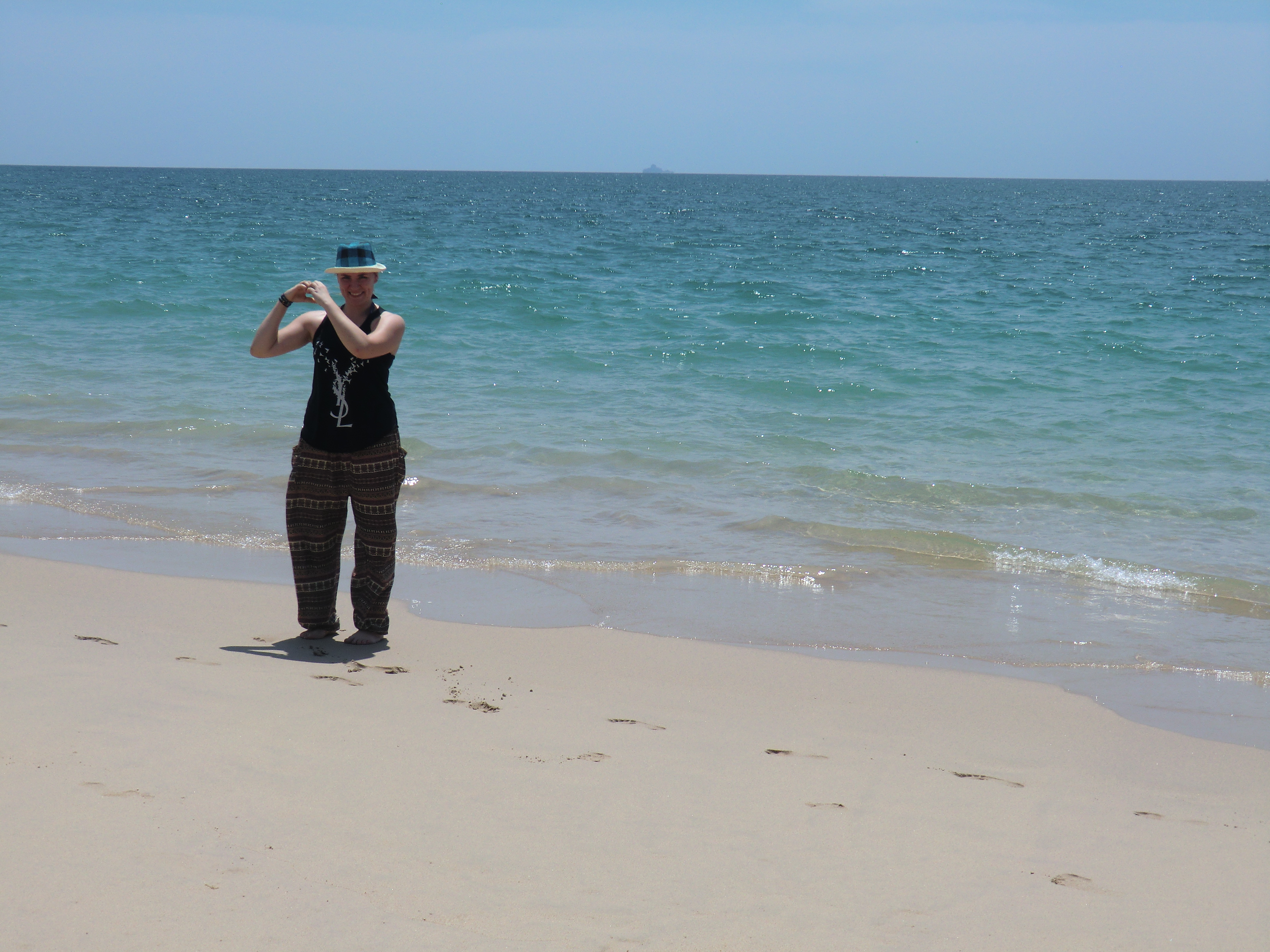 Nach einem Frühstück im Imbiss mit Sandwich und Eiskaffee, charterten Lisa und ich ein Tuk Tuk und fuhren zum 15 min. entfernten „Long Beach“. Dieser war noch schöner als der Strand von gestern, das Wasser glasklar, überall bis weit ins Meer hinaus, weißer, weicher Sand und das Meer war so salzhaltig, dass es einen getragen hat. So verbrachten wir den ganzen Tag mit Schwimmen und ich tauchte mit meiner Taucherbrille nach Muscheln. Leider habe ich das mit der krassen Sonne noch nicht im Griff und ganz nach dem Motto: „Wer braucht schon Sonnencreme?“, schlief ich in der Sonne ein.