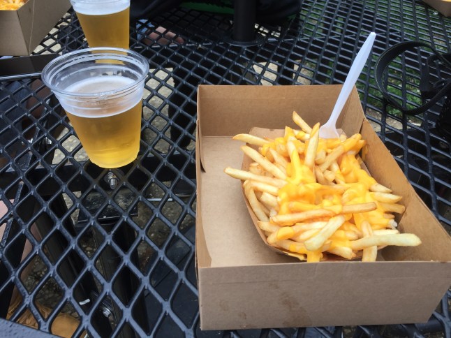Zur Mittagspause setzten wir uns an einen Imbiss der mit 8$ für ein Bier und Käsepommes (Cheese Fries) günstig und gut war.