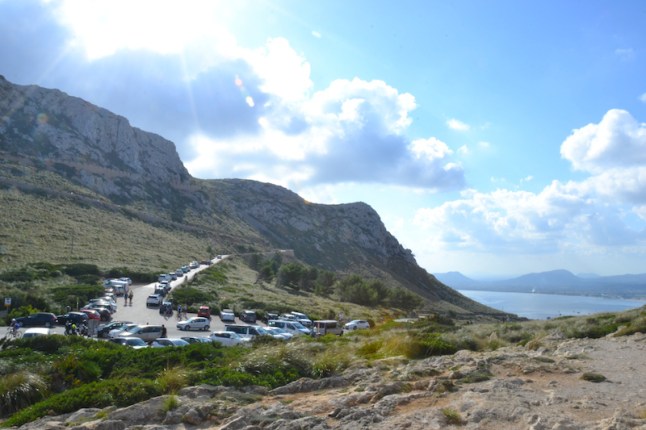 Wir wussten noch nicht, dass die Serpentinen und schmalen Straßen noch krasser werden können. Der Weg zum Leuchtturm Far de Formentor ist nichts für schwache Nerven. Richtige Leitplanken sucht man vergeblich und teilweise ist es sehr problematisch an den anderen Autos und unendlich vielen Radfahrern vorbei zu kommen. Die Straßen sind sehr schmal und links und rechts geht es mehrere Meter in die Tiefe. Die Kehren sind so eng, dass es einem schnell den Magen umdrehen kann. Vor dem Far de Formentor war so eine lange Autoschlange, dass wir erst mal warten mussten. Die Parkzustände sind chaotisch und ich bin froh, dass wir so ein kleines Auto haben. Man muss sich an den stehenden Autos vorbei schlängeln und dann noch irgendwo eine heiß begehrte Parklücke finden. Man braucht gute Nerven und viel Geduld.