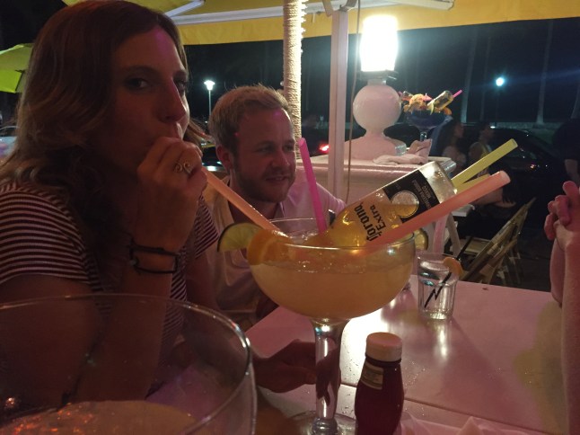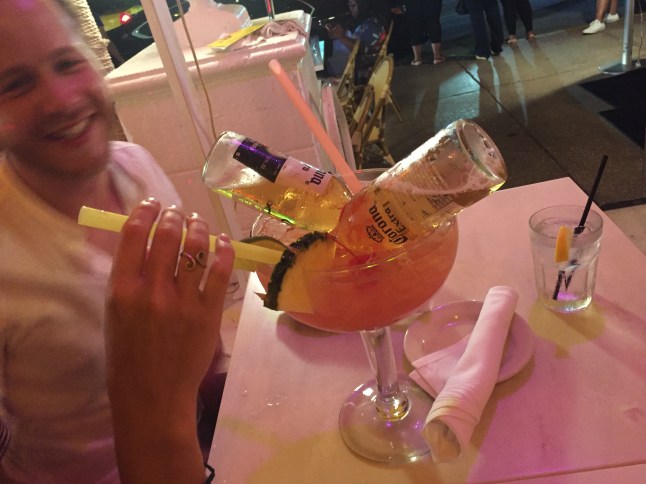 Um den letzten Abend von Vroni und Berni hier nochmal zu feiern, ging es für uns ein letztes Mal zusammen auf die Partymeile von Miami. Da das ein „Must-do“ hier ist, suchten wir uns auf dem berühmten Ocean Drive eine coole Bar, um den Superdrink zu probieren. Die „Fishbowl“ (Fischglas) hat nichts mit Fisch zu tun, sondern ist ein Getränk im 1L Glas mit vielen verschiedenen Spirituosen und in unserem Fall zwei Flaschen Corona drin. Ich war zu geizig, die bis zu 50$ für einen Drink auszugeben, aber die anderen probierten von dem Getränk, das ziemlich schnell zu Kopfe steigt. Irgendwann war ich zu müde um meine Augen offen zu halten und ging am Strand entlang zurück zum Hostel. Die anderen zogen noch ein bisschen weiter.