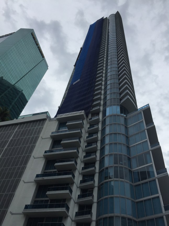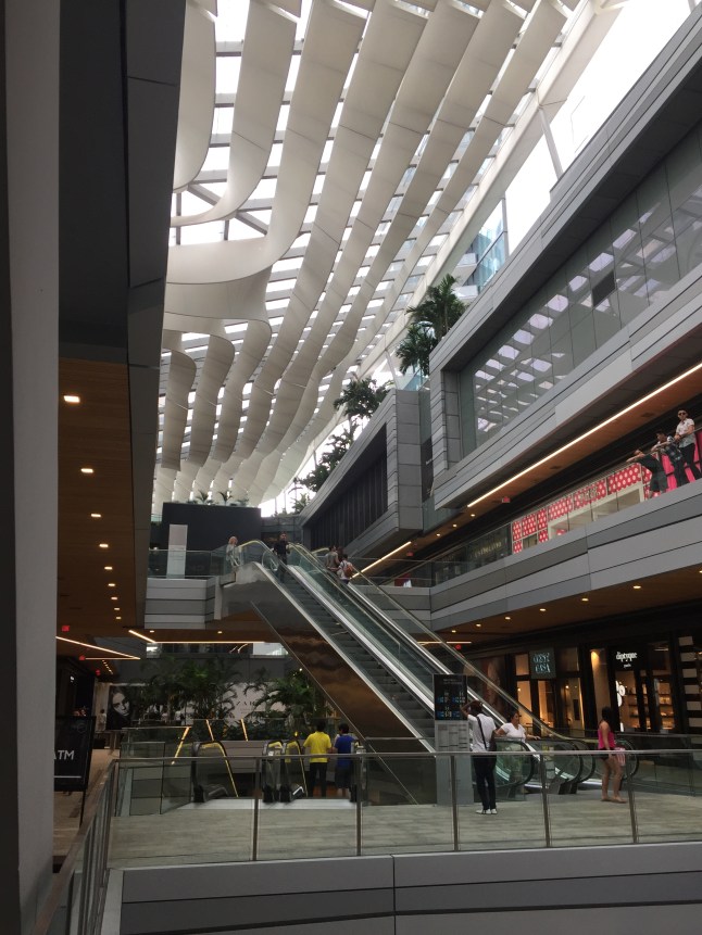 Um nochmal was von Miami zu sehen (unser Hostel ist ja in South Beach), fuhren wir mit dem Bus und mit gepackten Backpacks der beiden in die Stadt. Wie es auch anders sein kann, war es total bewölkt und nieselte ab und zu. Bisher hatte mich Miami nicht sonderlich beeindruckt und das änderte sich auch nach diesem Tag nicht. Außer vielen Wolkenkratzern bot uns die Stadt nicht viel Sehenswertes. So schlenderten wir gemütlich durch eine Shoppingmall und setzten uns ans Ufer um die Boote zu beobachten.