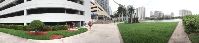 Erst erkundeten wir die Stadt und dann wollten wir eigentlich mit dem Watertrolley, also einem kostenlosen Wassertaxi eine Rundfahrt auf dem Fluss „New River“ machen. Leider war da gerade Mittagspause und so hätten wir 2 Stunden warten müssen. Dann liefen wir eine Weile spazieren und verausgabten uns an Sportgeräten. Die Fähre war uns zu teuer. Diese fährt zwar weiter und auch ins Hollywood von Fort Lauderdale, aber das wollten wir eh nicht sehen. So setzen wir uns in einen total tolle Bar am Fluss, ließen uns vom witzigen Barkeeper bespaßen, tranken noch zwei Bier und nutzten das kostenlose WLAN aus.