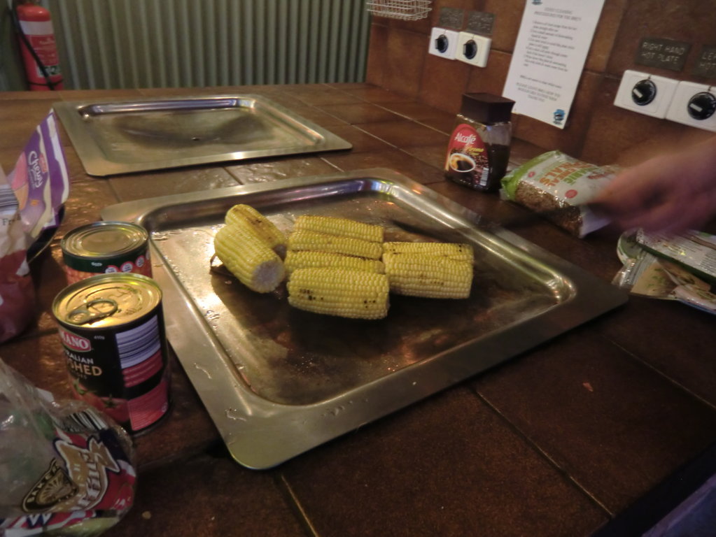 Jona, Sarah und Sam kochten und ich ruhte mich aus. Es gab Gnocci, Ratatoullie, Nudeln, Maiskolben und Reis und wir ließen es uns alle schmecken. Der Campingplatz hatte total geschickte Grillplatten, auf denen man alles grillen konnte.
