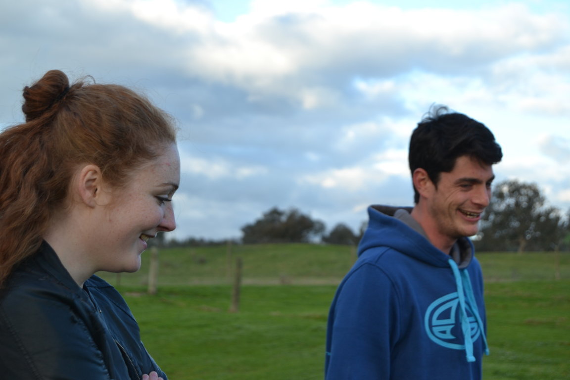 Die fast eineinhalb Stunden Fahrt kamen mir ewig vor. Als ich dann mitten im Nirgendwo auf der Farm ankam, freute ich mich total. Die 3 Hofhunde begrüßten mich freundlich. Als erstes lernte ich Saphia und Matthew kennen, die seit 2 Monaten hier arbeiten. Das nette französische Pärchen zeigte mir gleich alles und stellte mich meinem Chef Andrew vor. Diesem half ich ein Feuer zu machen, weil er derzeit alle Holzreste verbrennt. Zum Glück zündete er es an, weil ich nicht so der Held im Feuer machen bin. Auf Toms Farm musste das schon immer Sophia machen.
