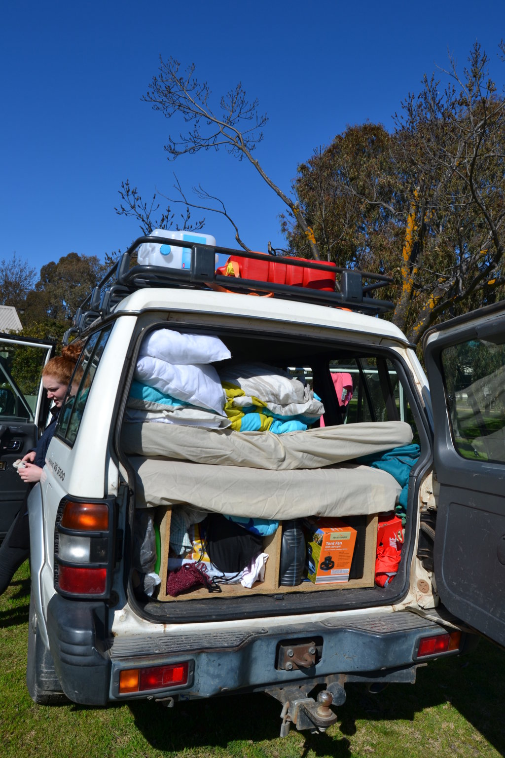 Als ich dann aber aufwachte, war es viel zu heiß. Ich zog alle Schichten bis aufs T-Shirt aus und machte die Autotüren auf. Die Sonne hatte Brissie so aufgeheizt, dass ich es nicht mehr aushielt und früh aus dem Bett krabbelte.