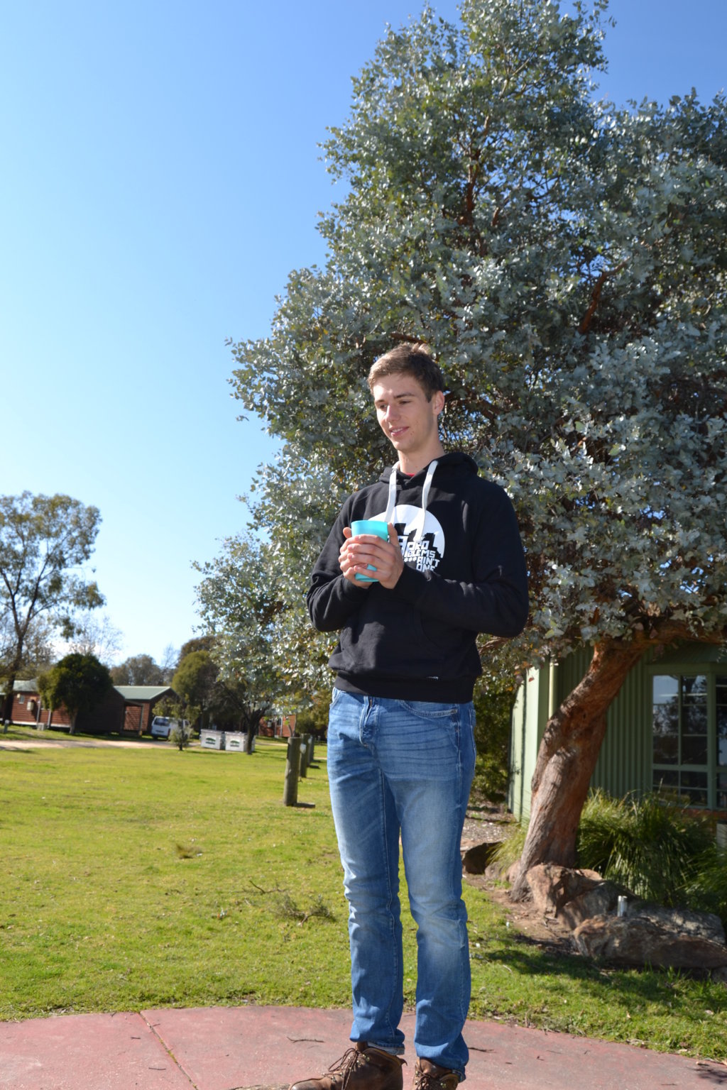 Es dämmerte schon langsam als wir an einem großen Schild mit „Holiday Park“ vorbei fuhren. Ich folgte den weiteren Schildern und wir kamen an einem wunderschönen, sehr ruhig gelegenen Campingplatz raus. Für 7,50$ pro Person und Nacht, bekamen wir einen Stellplatz mit Strom.