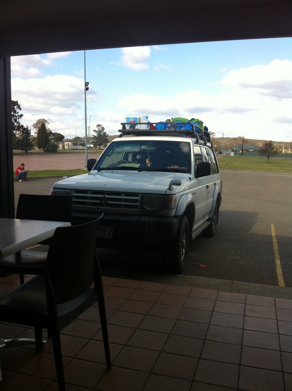 Frisch gestärkt stand schon die erste Aufgabe bevor: How to pack a Jeep? Gestern hat mich Sarah gefragt ob es ok ist einen jungen Mann vom Hostel mit auf die große Tour zu nehmen. Ich war gar nicht begeistert weil unsere Sachen so schon nicht in Brissie gepasst haben. Als wir dann in aller Frühe vor meinem Auto standen und versucht haben, es bis unters Dach vollzupacken, sank meine Laune in den Keller. Ich setzte mich auf den Fahrersitz, ließ die anderen machen und erklärte Sarah, dass ich ihr gleich gesagt hatte, dass das eine schlechte Idee war. Ganz stolz erklärten mir die Jungs, dass sie alles verstaut hätten. Es wäre lebensmüde gewesen, wenn wir mit der ungesicherten Ladung auf meinem Dach losgefahren wären. Also machte sich die Fachfrau ans Werk und ich zurrte alles mit Gurten und Gummibändern fest. Endlich konnte es los gehen. Ich bin mir zwar sicher, dass Brissie nun zu voll beladen war, aber stehen lassen konnte ich den jungen Mann ja auch nicht.