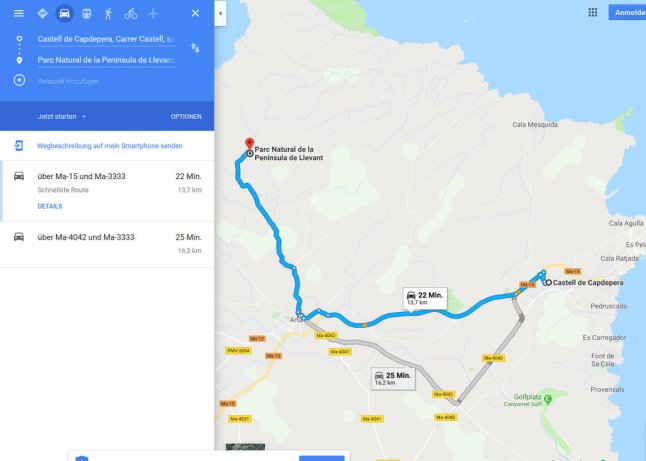 Papa hatte von seinem Arbeitskollegen den ultimativen Tipp für einen Nationalpark bekommen. Er war ganz aufgeregt uns was Schönes präsentieren zu können und freute sich total. Der Weg zum „Parc natural de la península de Llevant“ war sehr holprig und versprach viel Natur. Am Wegesrand hatte es viele Obstbäume, wo Papa Orangen klauen wollte. Ich riet davon ab. Man weiß ja nie wer da so kommt und schimpft… Im Nationalpark angekommen suchte Papa das Highlight. Wie ein Nationalpark halt eben so ist, gab es viel Natur und mehrere Kilometer Wanderwege. Wir entschieden uns für eine 5 Kilometer kurze Wanderung, aber leider hatte von uns keiner das passende Schuhwerk an. Die Steine waren mehr Felsbrocken und außer Schafen und sehr kargen Landschaften sahen wir leider nichts. Wir liefen und liefen, aber es wurde nicht viel abwechslungsreicher. So beschlossen wir einstimmig unsere Wanderung abzubrechen und zurück zum Auto zu staksen. Papa versuchte sich die Enttäuschung nicht anmerken zu lassen, aber dafür kennen Oma und ich ihn zu gut. So musste er sich den ganzen Tag unsere Witze über die Wölfe und Schlangen anhören, die er im Park erwartet hatte. Wenigstens weiß Papa jetzt auch, was ein Nationalpark ist.