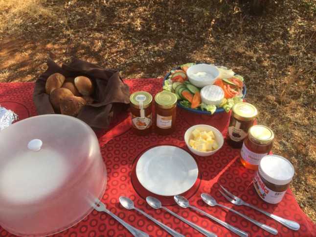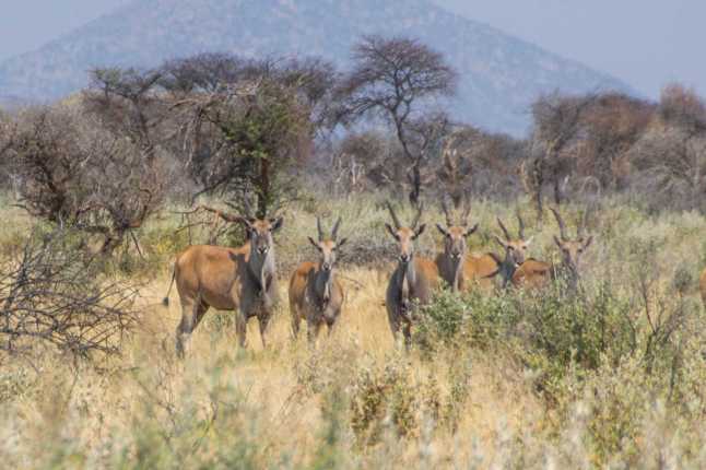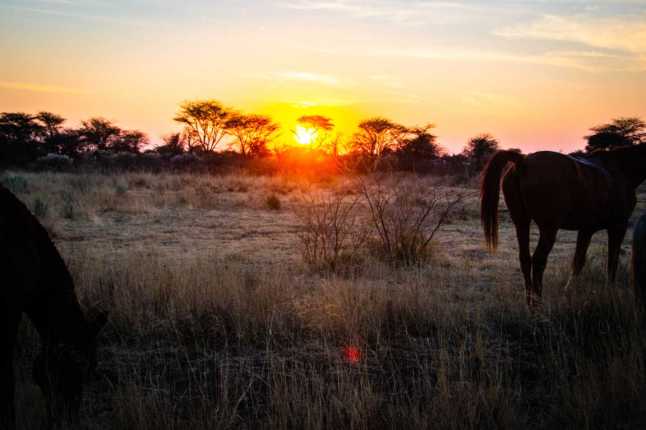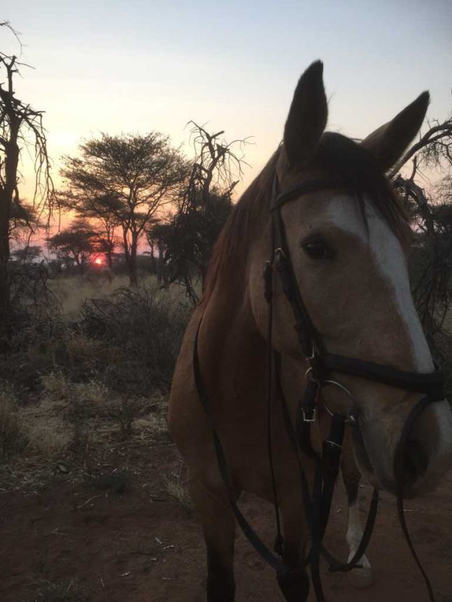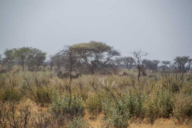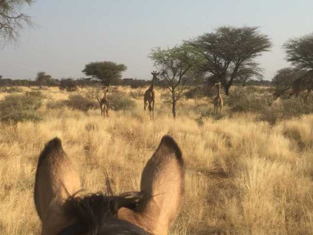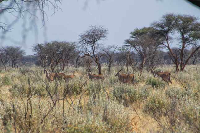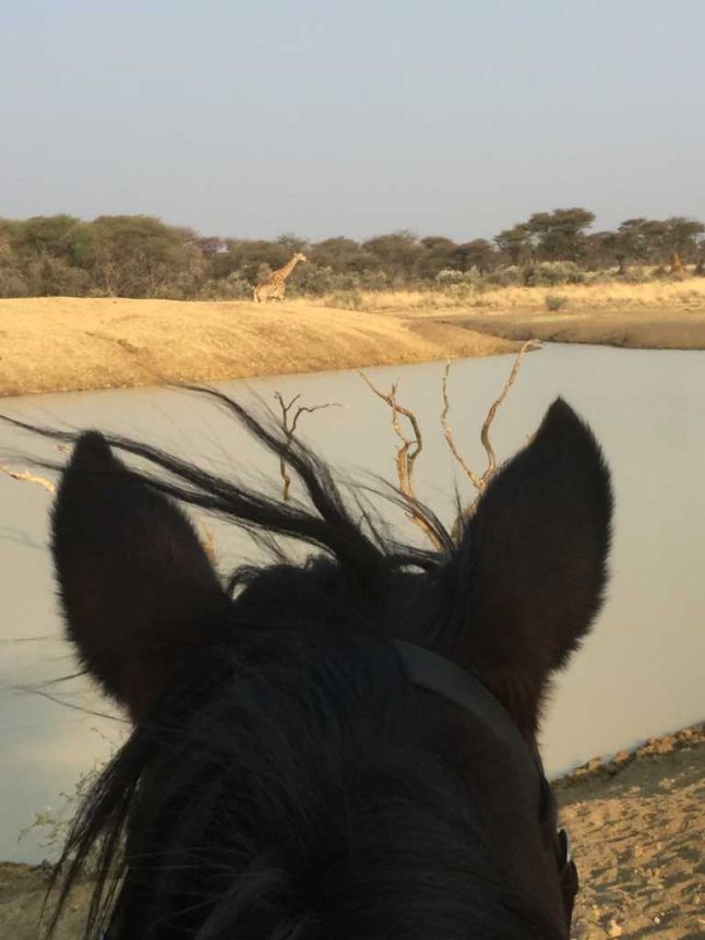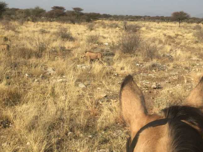 In aller Frühe starteten Pewa und ich einen Ritt mit einer Frau die neu angekommen war. Wenn man einen Ritt zu zweit hat, ist das super entspannt und wir unterhielten uns gut. Ich ritt den Anfang der Runde gleich wie am Vortag, um mein Funkgerät zu suchen. Ich blieb erfolglos und war total verzweifelt. Das ist wirklich der super-GAU und das Gerät ist sehr wichtig. Es gibt auch keine Ersatzgeräte und mitten im Nirgendwo kommt man auch nicht so einfach an eins ran. Leider waren auf der Strecke auch nicht viele Tiere unterwegs. Als wir schon fast wieder an der Farm waren, sah ich sie zum ersten Mal: Eine riesige Herde Elands mit unzähligen Kälbern, von denen einige erst ein paar Wochen alt sind. Jeder hatte die Herde die eigentlich aus 100 Tieren besteht schon gesehen, aber für mich war es das erste Mal. Sie ließen sich überhaupt nicht stören und wir standen ewig genau daneben und beobachteten sie. Die Mütter schirmten die Tiere anfangs noch von uns ab, aber entschieden sich dann dafür, dass wir keine potenzielle Gefahr darstellen. Das war so wunderschön diese großen Antilopen zu beobachten.