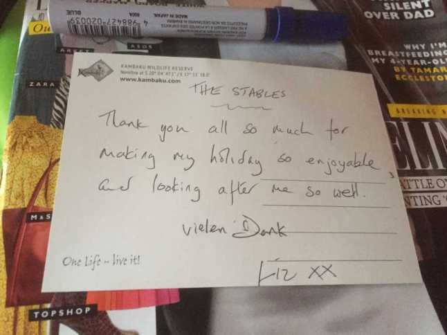 Als wir nach eineinhalb Stunden zurück waren, longierte ich noch ein junges Pferd und es war schon fast dunkel als Laura von ihrem Ritt zurück kam. Als wir alles fertig hatten, war Feierabend und wir konnten zum Abendessen.