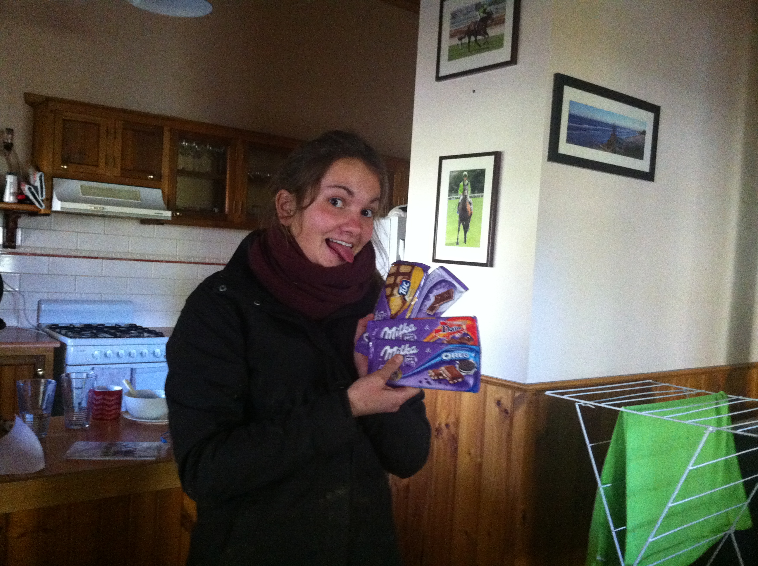 Beim Auspacken war es wie Weihnachten, Ostern und Geburtstag zusammen. Endlich meine Reitsachen und dann kam noch ganz viel leckere Milkaschokolade mit, über die Sophia und ich uns so freuten, dass wir ausflippten und durchs Haus tanzten. Endlich hab ich auch meine Chillerpullis wieder, deren Geruch mir ein bisschen Heimat schenkten.