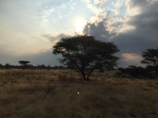 Den Rest der Strecke fand ich schnell und auch die Zeichnung war gut, denn den Weg hatte ich auch entdeckt. Wir kamen am großen Wasserloch raus und es war total schön dort. Auch meinen Gästen gefiel es dort richtig gut. Wir ritten wieder Richtung Wanderwege und ich merkte schnell, dass wir viel zu früh waren. Dadurch, dass ich den ersten Teil der Strecke weg gelassen hatte und quasi die Abkürzung genommen hatte, wären wir viel zu früh am Sonnenuntergangsplatz gewesen. So ritt ich Kreuz und quer durch die Wanderwege. Als ich dachte das passt nun mit der Zeit, ritt ich zum Sonnenuntergangsplatz. Mein Kollege der es aufbauen sollte, fuhr gerade erst her und war nicht so begeistert, dass wir 20 Min. zu früh waren. Ich half ihm mit aufbauen und wir sattelten und trensten die Pferde ab. Diese durften dann allein nach Hause laufen und waren schneller weg, als wir gucken konnten. Danach kam auch schon Laura mit ihrer Familie her geritten und wir genossen alle unseren wohlverdienten Gin Tonic. Alle waren in rege Gespräche vertieft, als die Sonne langsam unterging und wir den Pferden die noch da waren, beim Fressen im Sonnenuntergang zu schauten. Das war ein super genialer Sundowner und die Gäste waren alle begeistert.
