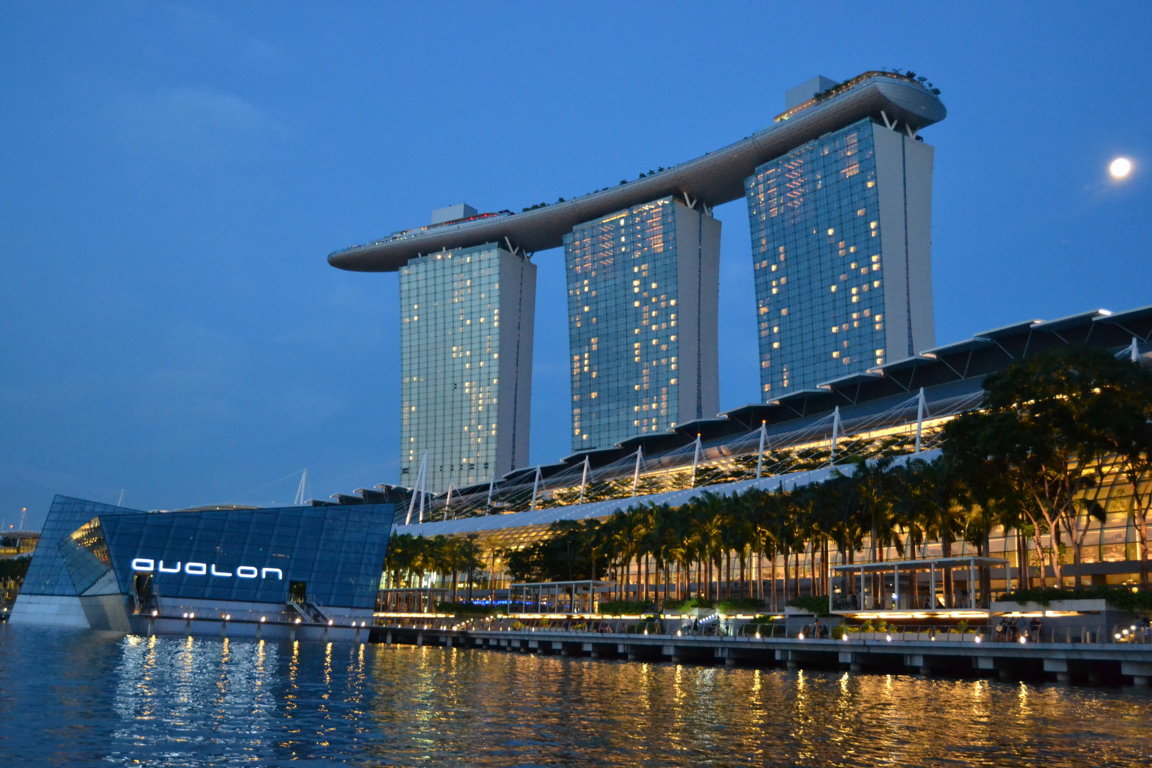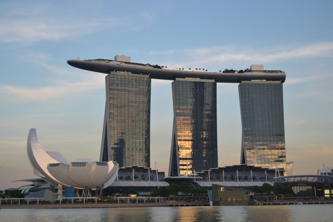 An das andere Ende der Stadt ging es wieder mit dem MRT zur Promenade und dann zum berühmten Marina Bay. Das ist eine architektonische Meisterleistung und ein Hotel mit Infinity-Pool und nachgebautem Schiff auf dem Dach.