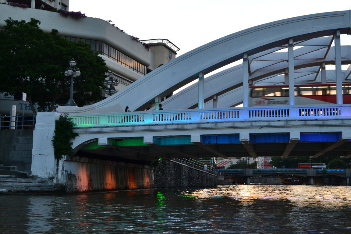 Romantisch wurde es bei der Flussrundfahrt und der Sonnenuntergang sah super aus. Als die riesige, moderne Skyline von Singapur langsam vom Sonnenlicht in moderne Farben wechselte, tuckerte das Schiff gemütlich vorwärts und ich erfuhr viele interessante Dinge.