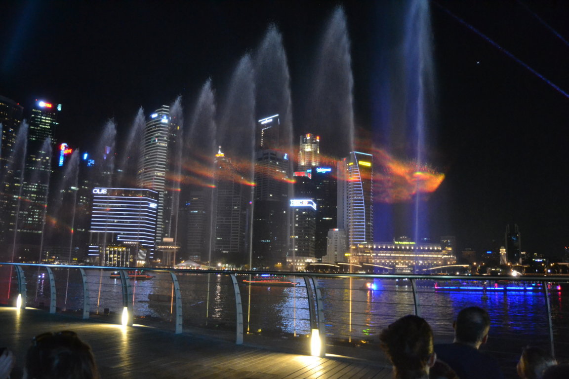 Zu 12. trafen wir uns und waren mega beeindruckt von der gigantischen Lasershow. Auf Wasserspielen wurden ganze Filme mit Lasern gezeigt und es war so gut gemacht, dass man jedes Gesicht im Film genau erkennen konnte. Die Musik passte super dazu, es gab Seifenblasen und es war ein richtiges Gänsehautgefühl vor der Skyline zu sitzen und die perfekt abgestimmten Laser vom Marina Bay aus zu sehen.