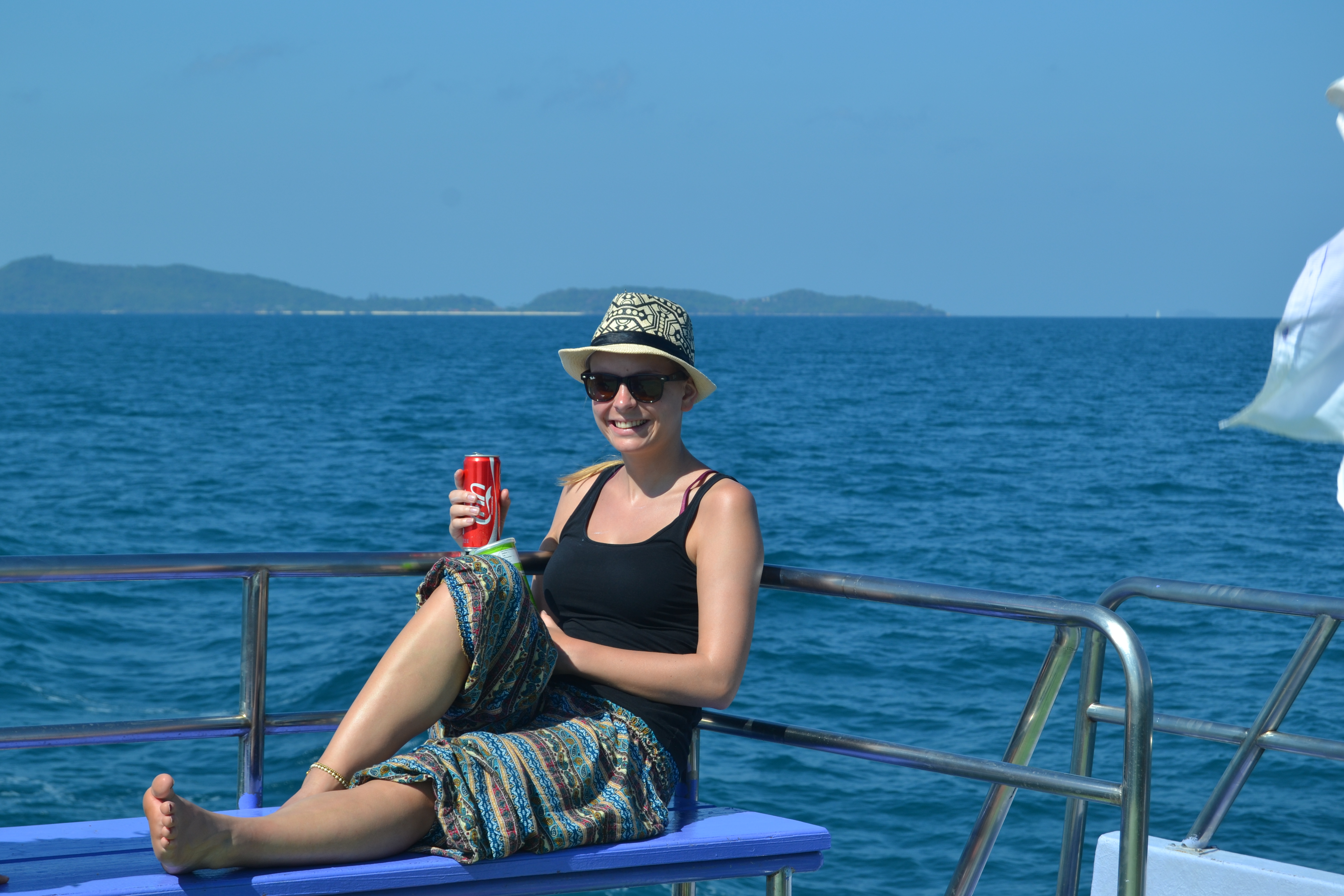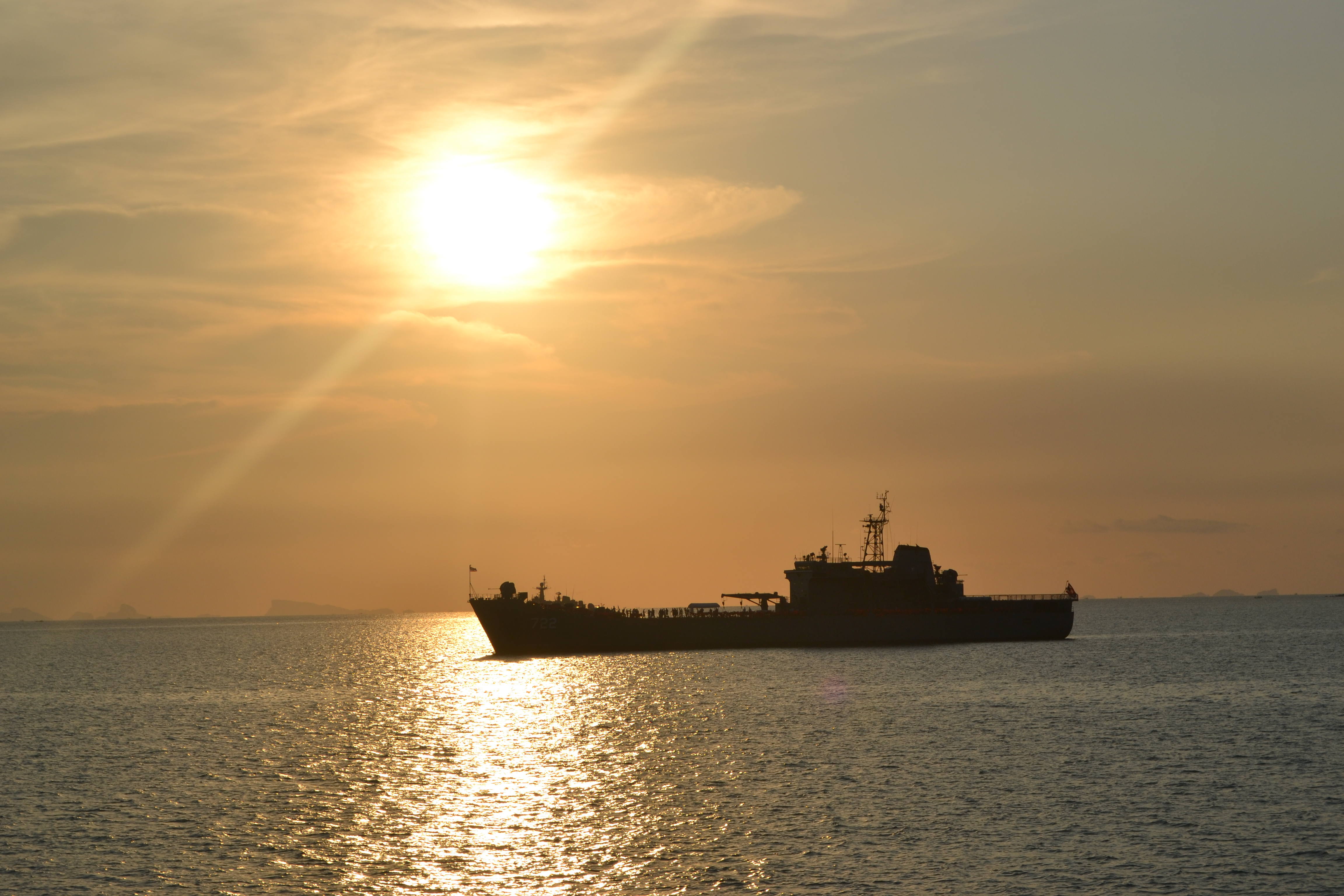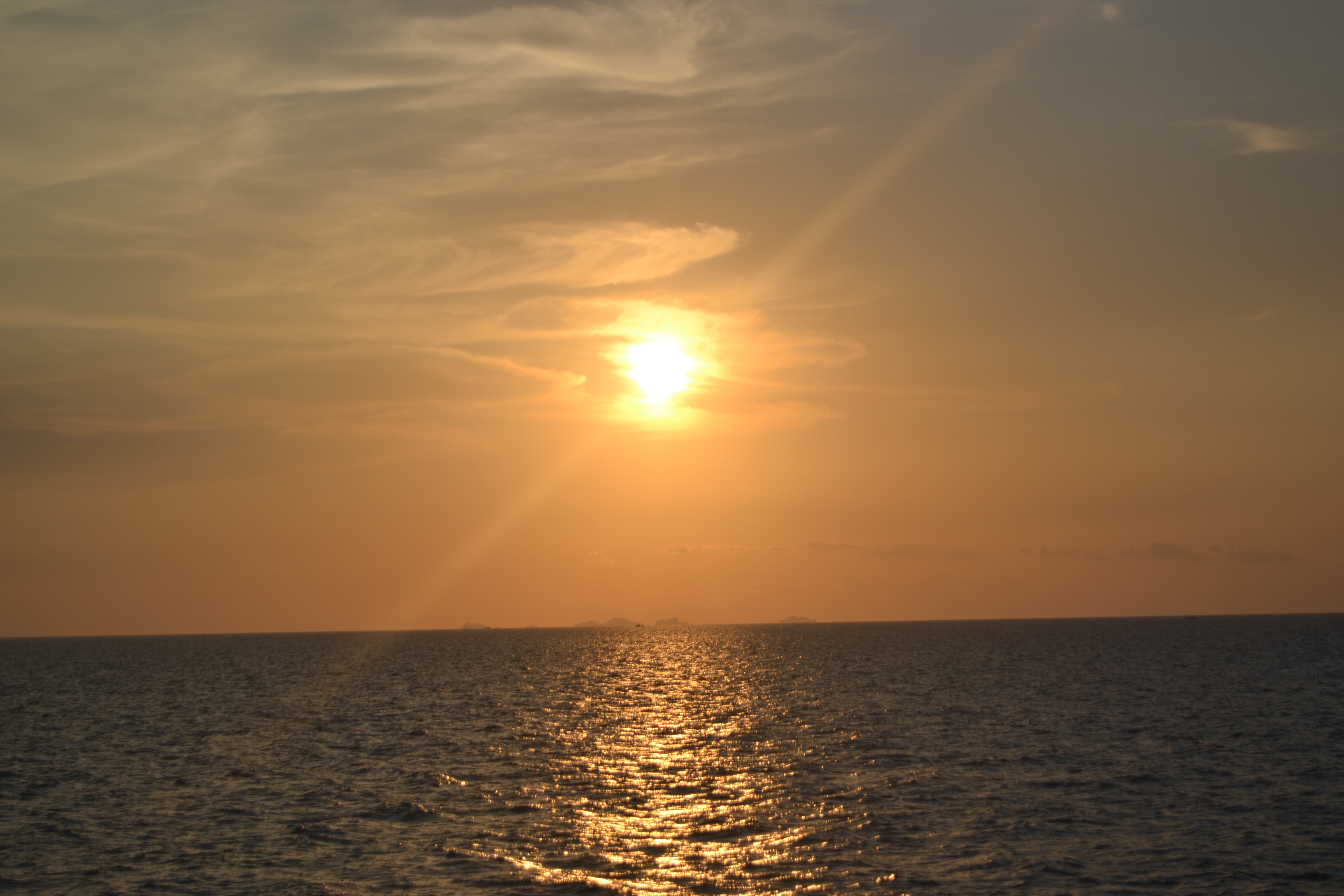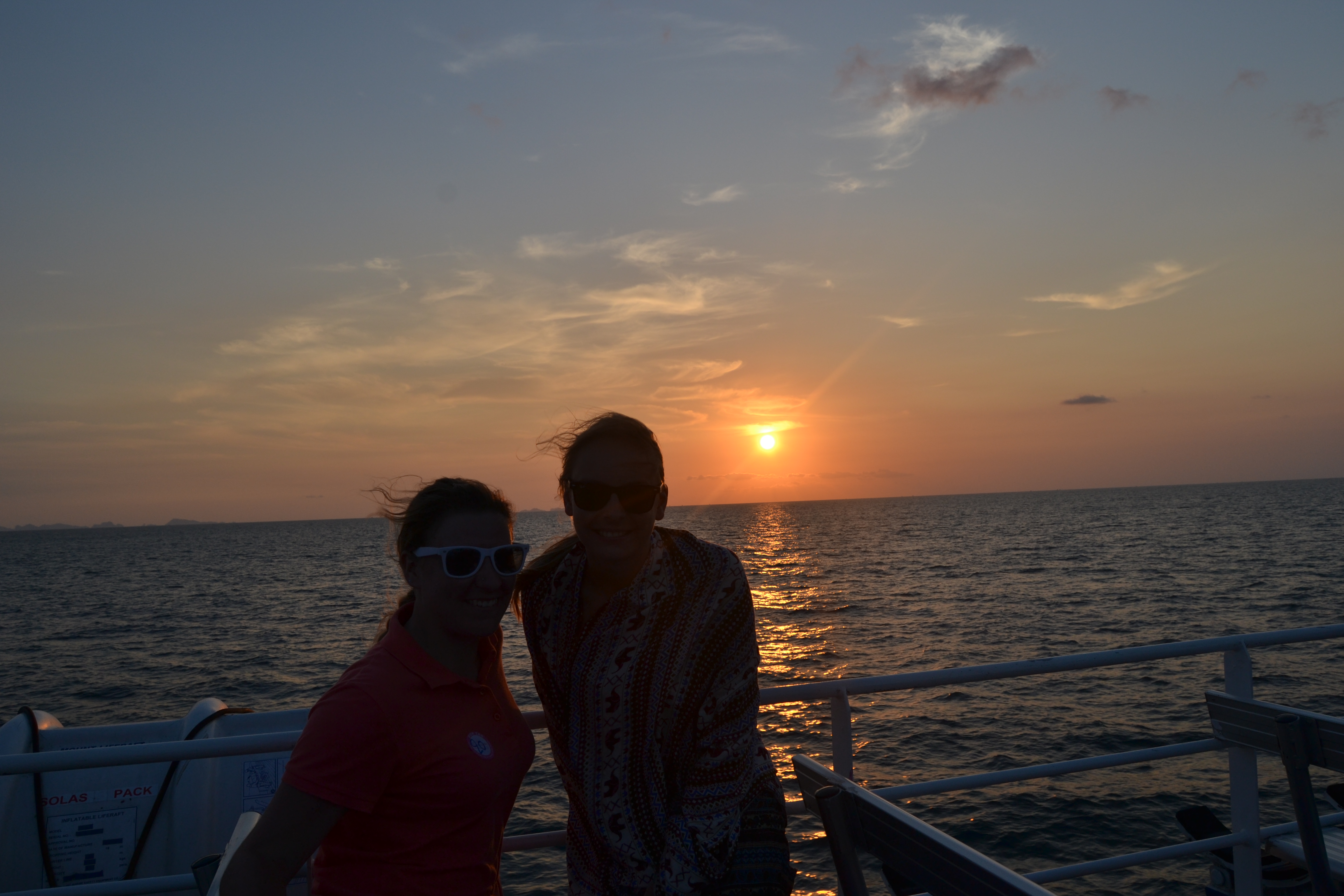 Ich saß auf der Bank, guckte auf das strahlend blaue Meer, der warme, leichte Wind wehte durch meine Haare, ich hörte meine Lieblingsmusik, dachte an die vielen gigantischen Erlebnisse bisher, die Sonne scheinte mir ins Gesicht und ich freute mich wahnsinnig auf Kambodscha. Als ich dann den schönsten Sonnenuntergang aller Zeiten beobachtete, war ich einfach nur total glücklich. Glücklich darüber, dass ich hier sein, die Reise machen, so viel erleben und einfach nur das Leben genießen darf. Als sich dann der Himmel langsam von einem gigantischen Orange in ein Pechschwarz verwandelte, guckte ich mir die Sterne und den total schönen Mond an, bis wir um 8 anlegten. Das war ein richtiges Gänsehautgefühl.