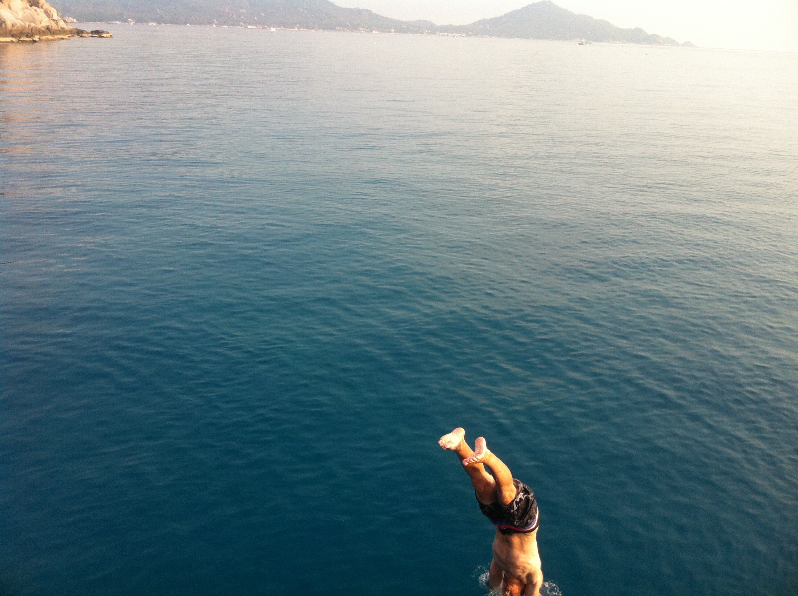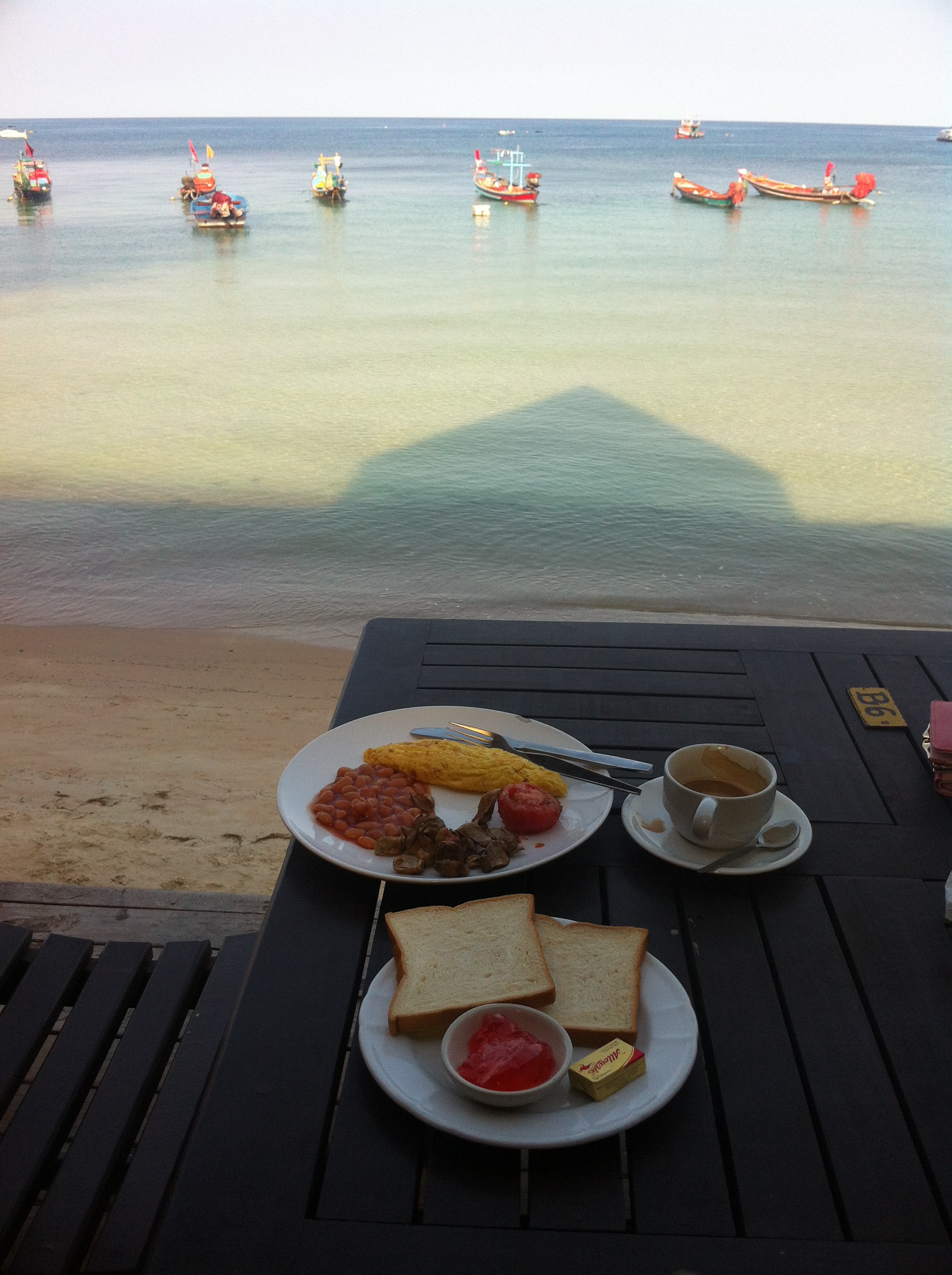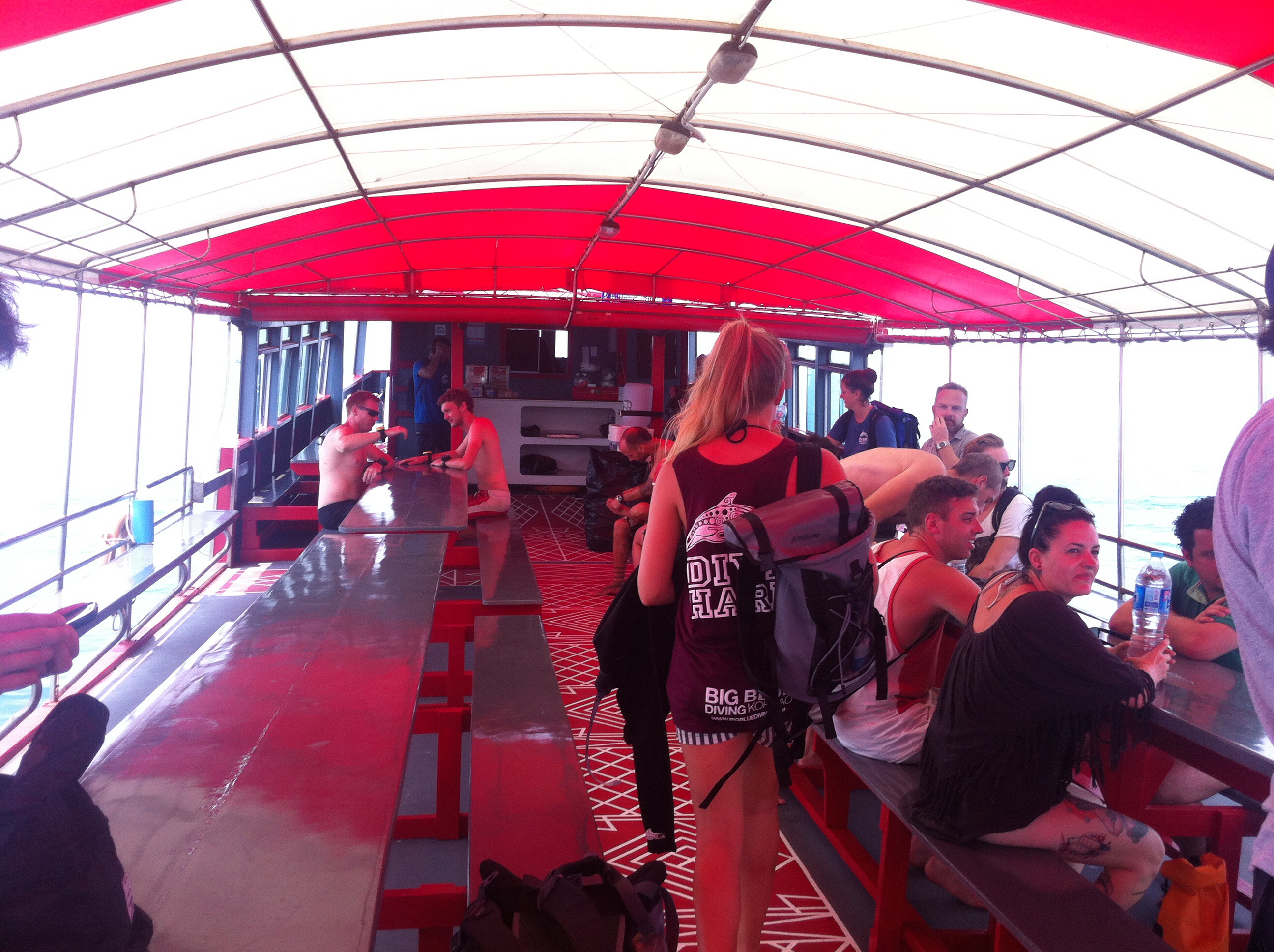 Zu einer gesegneten Zeit (10 Uhr) starteten wir beim Frühstück am Strand mit Theorie des Advanced Adventure Kurses in den Tag. Die Tauchschule „Big Blue Diving“ kann ich total empfehlen. Meine Ohren sind seit 5 Tagen zu, aber mein neuer Instructor „Phil“ sagte, dass das nicht schlimm sei. Wir haben viel über den Tauchcomputer, Atemtechniken, Auftrieb und Navigation gelernt und mussten mit Hilfe des Kompasses im Viereck laufen.