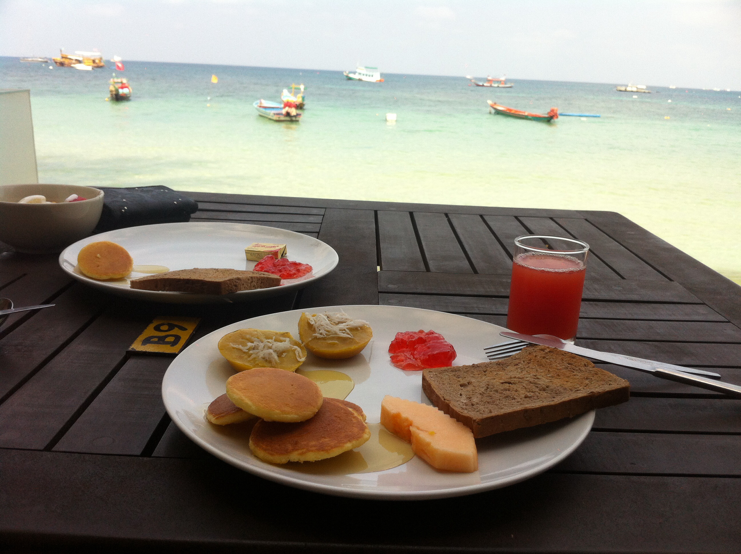 Als Abschluss für Vroni ging es heute wieder königlich am Strand frühstücken. Wir leisteten uns ein tolles Buffet für 7€ wo es von Obst, über alle möglichen Eier bis hin zu Pad-Thai und Fried Rice alles gab was unser Herz begehrt.